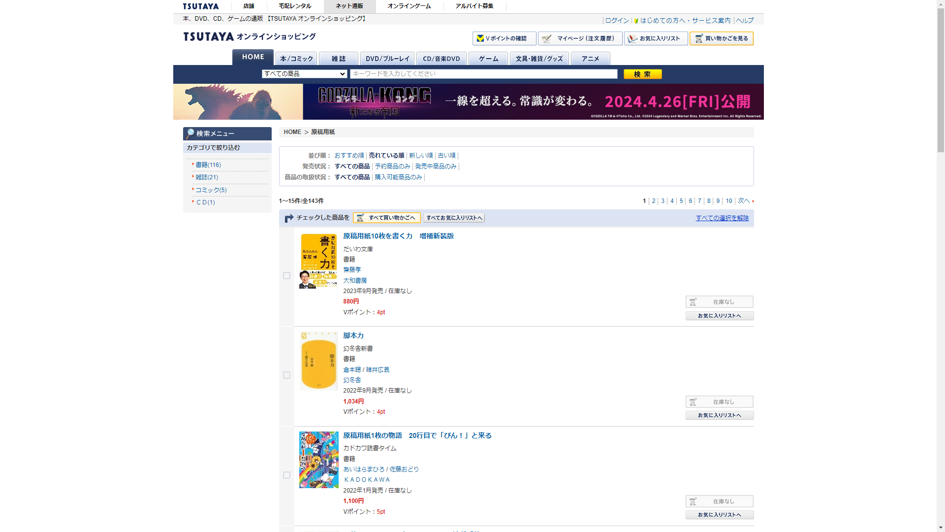 原稿用紙は蔦屋書店に売っています!
