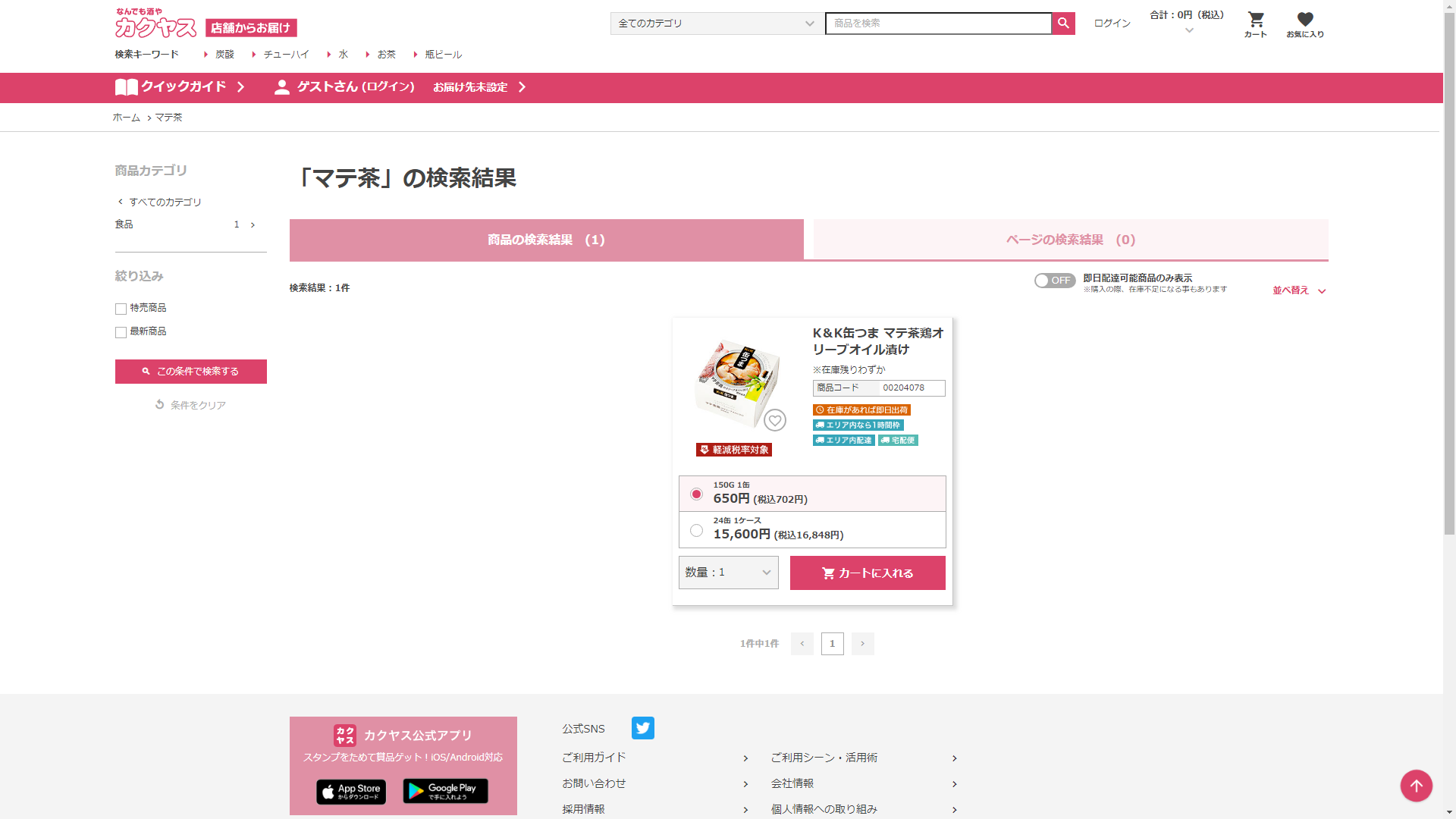 お調べしたところ現在、なんでも酒やカクヤスではマテ茶に関連する商品を買うことが可能です。