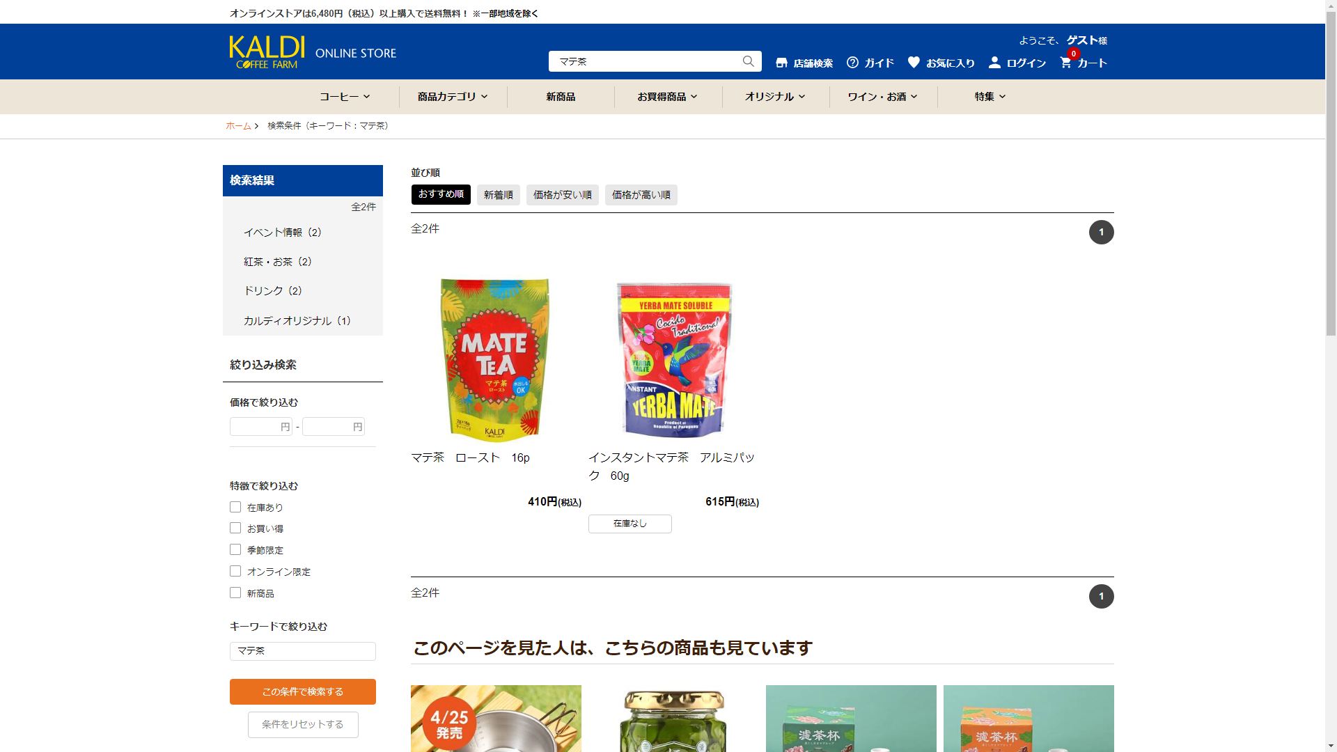 お調べしたところ現在、カルディではマテ茶に関連する商品が販売されています。