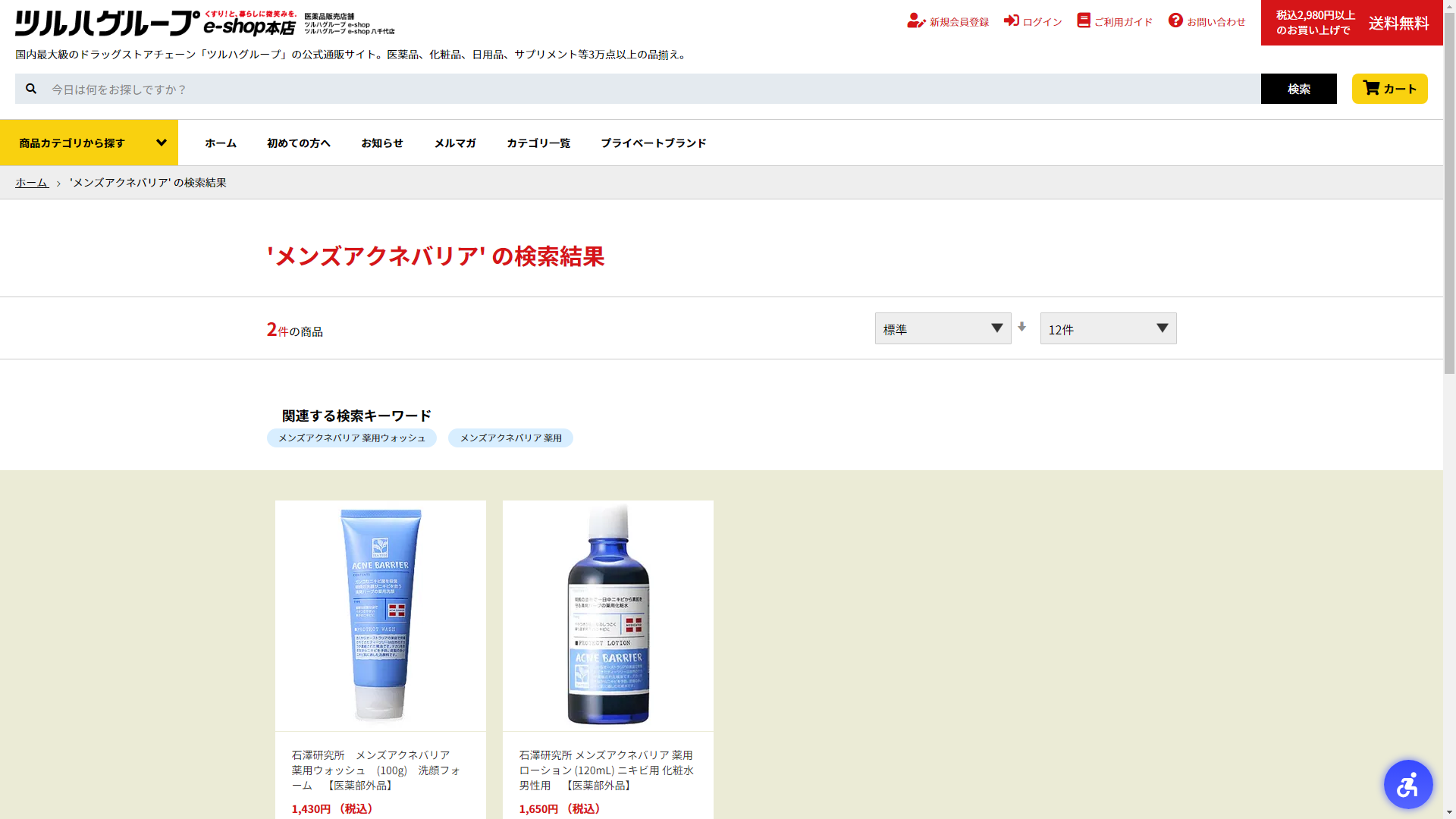 お調べしたところ現在、コクミンドラッグではメンズアクネバリアの関連する商品が販売されています。