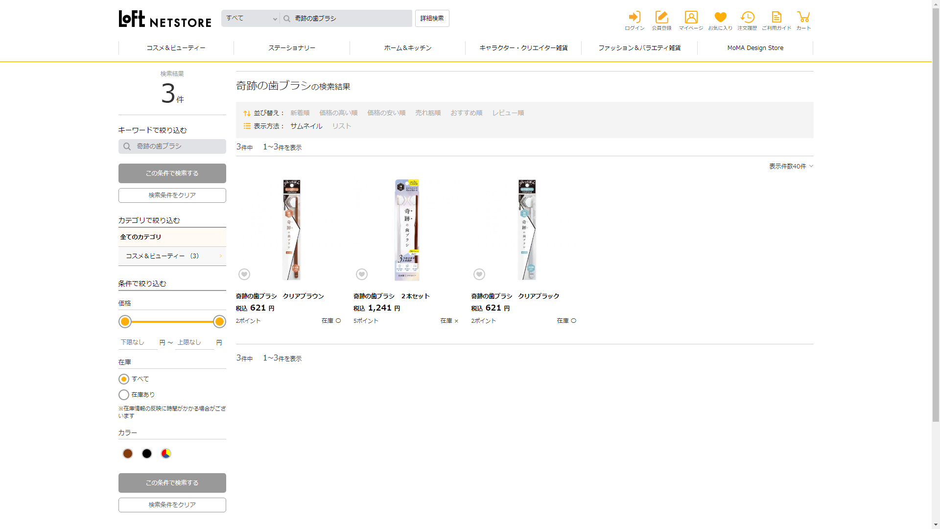 お調べしたところ現在、ロフトでは奇跡の歯ブラシに関連する商品が販売されています。
