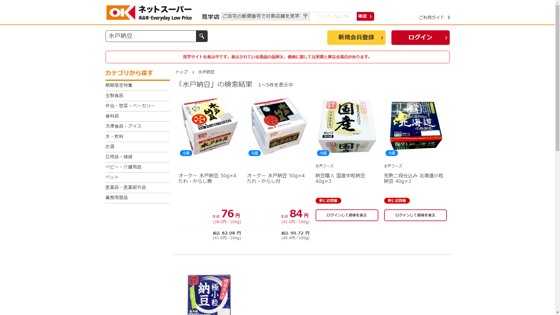 お調べしたところ現在OKネットスーパーでは水戸納豆に関連する商品が販売されています。