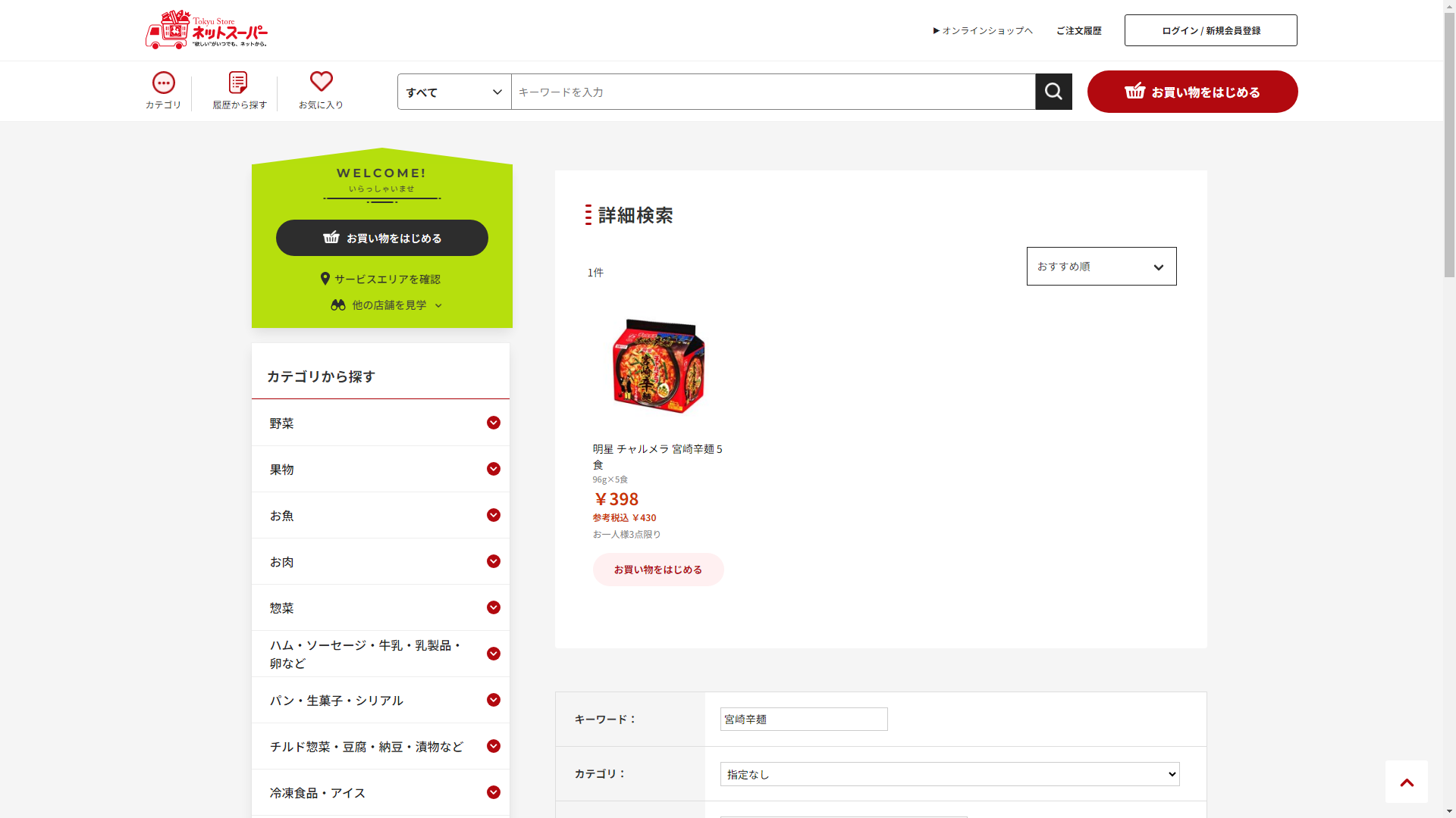 お調べしたところ現在、東急ストアでは宮崎辛麺の関連する商品が販売されています。