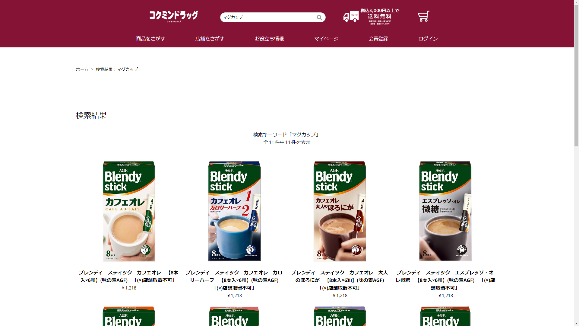 お調べしたところ現在、コクミンドラッグではマグカップの関連する商品が販売されています。