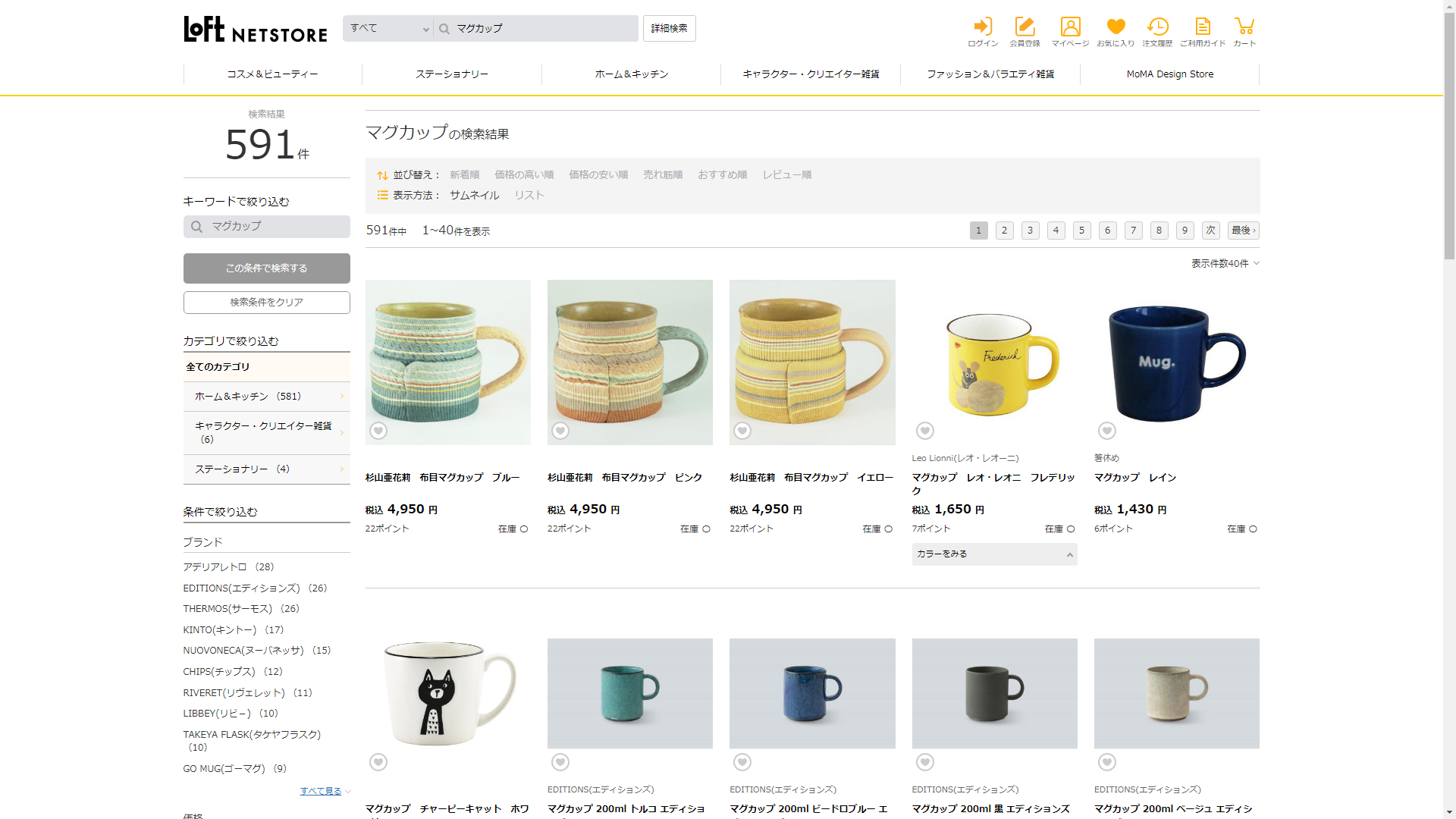 お調べしたところ現在、ロフトではマグカップに関連する商品が販売されています。