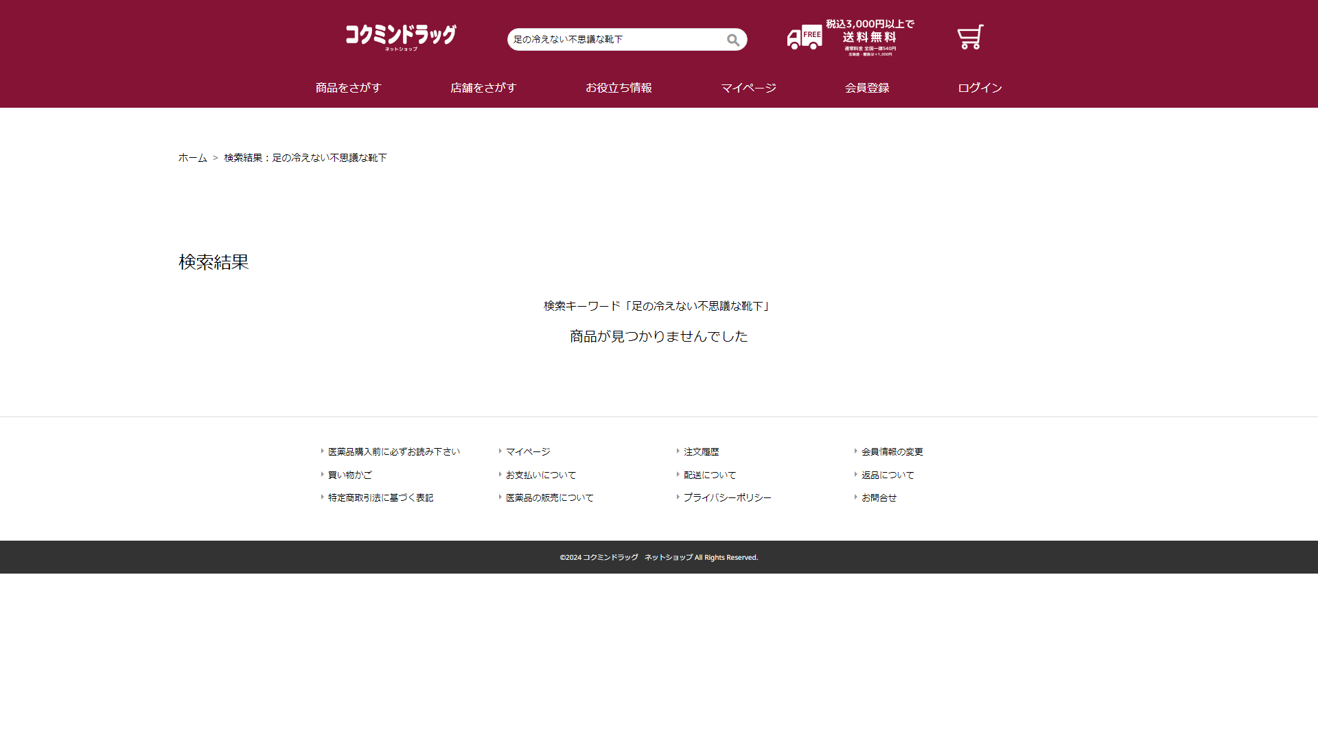 足の冷えない不思議な靴下はコクミンドラッグには売っていません