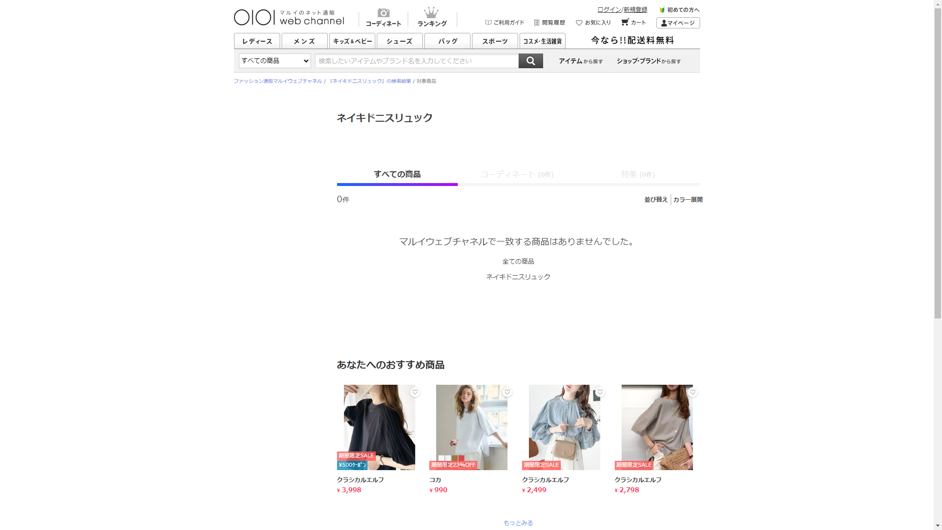 お調べしたところ残念ながら現在ではOIOI(マルイ)にネイキドニスリュックは販売されていませんでした。