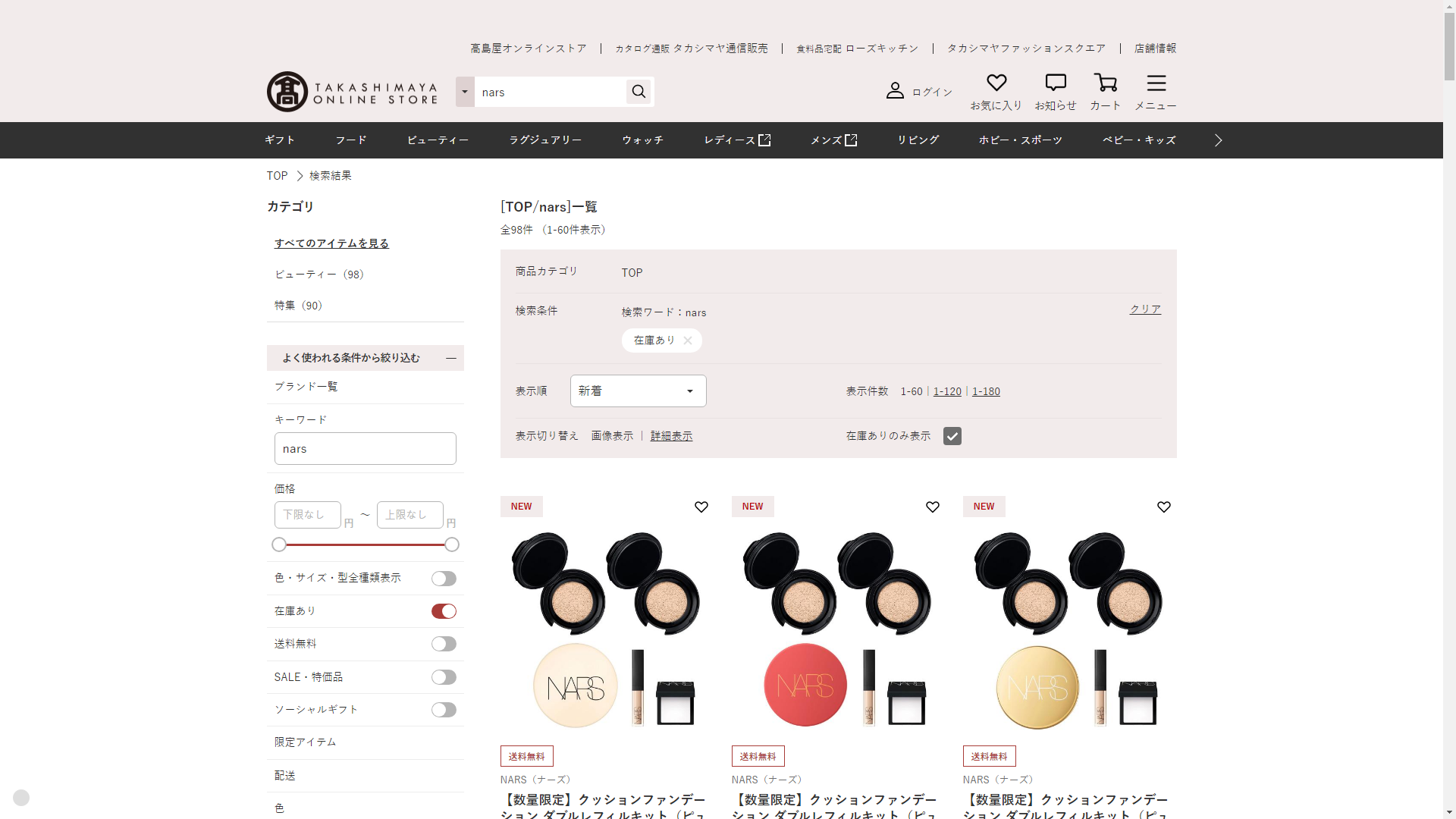 narsは高島屋に売っています