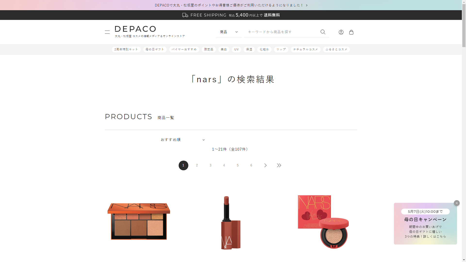 narsは大丸松坂屋で販売されています