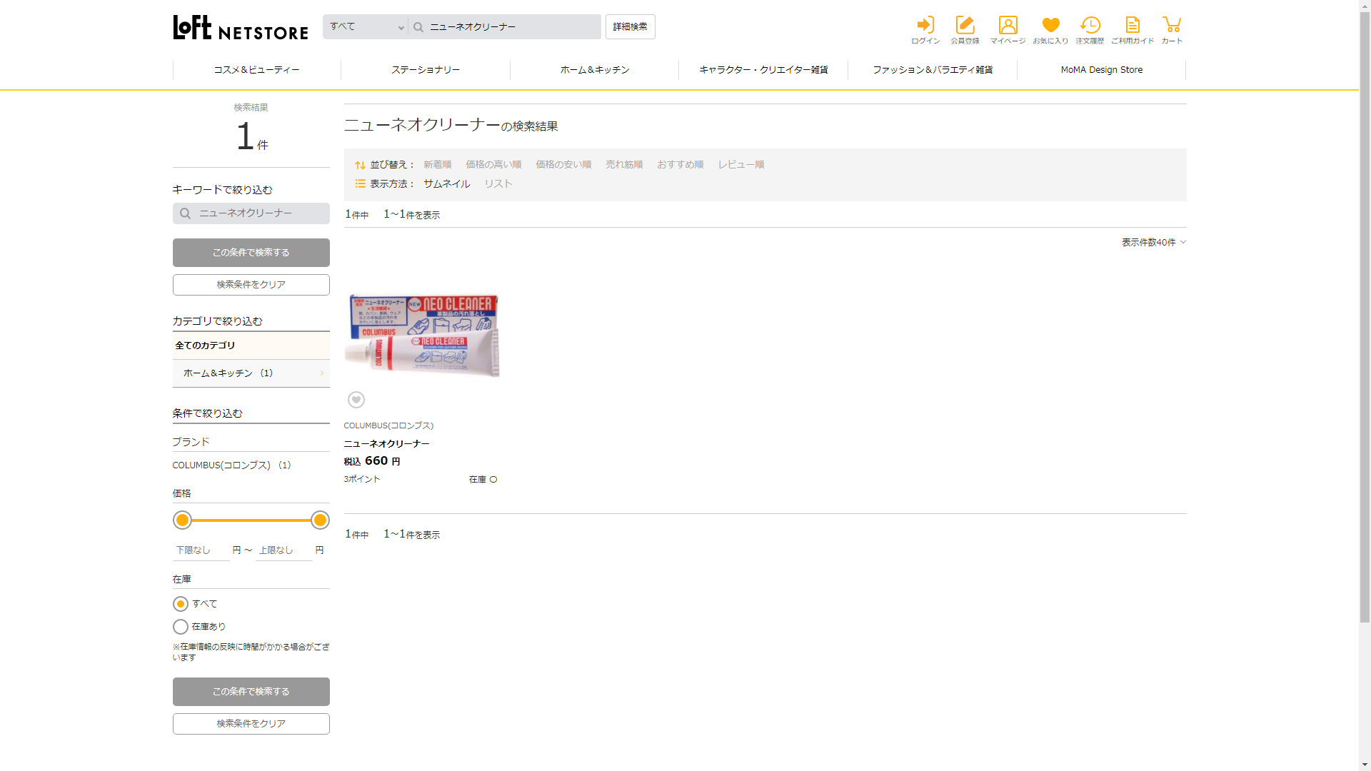 お調べしたところ現在、ロフトではニューネオクリーナーに関連する商品が販売されています。