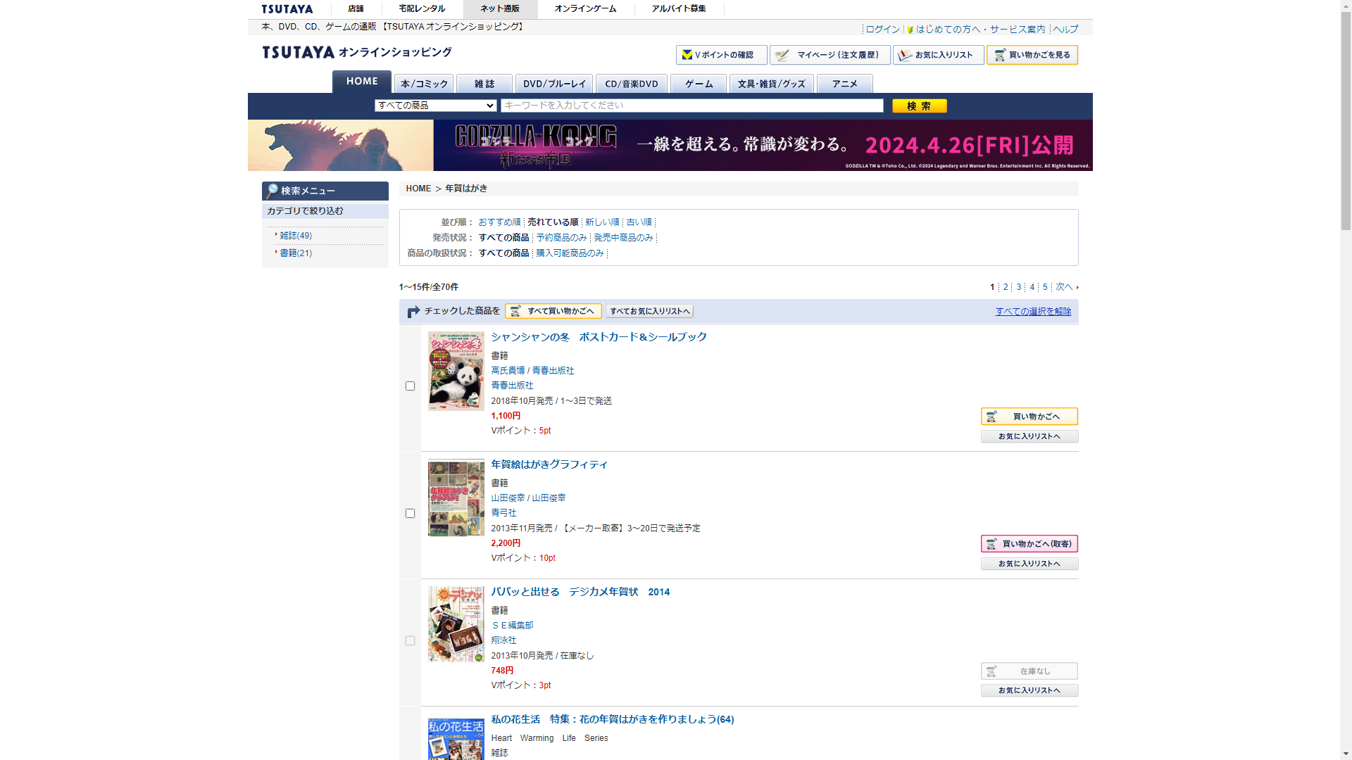 お調べしたところ現在、蔦屋書店では年賀はがきの関連する商品が販売されています。