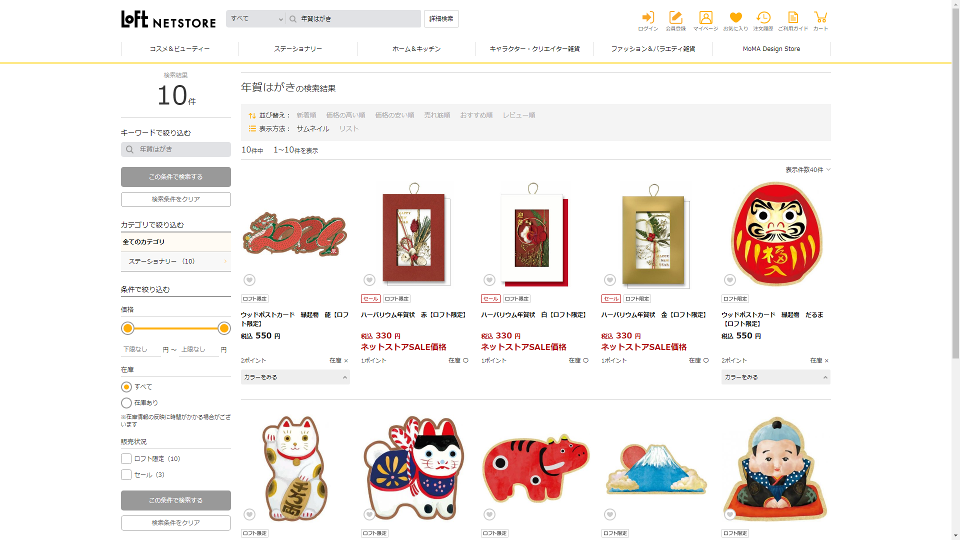 お調べしたところ現在、ロフトでは年賀はがきに関連する商品が販売されています。