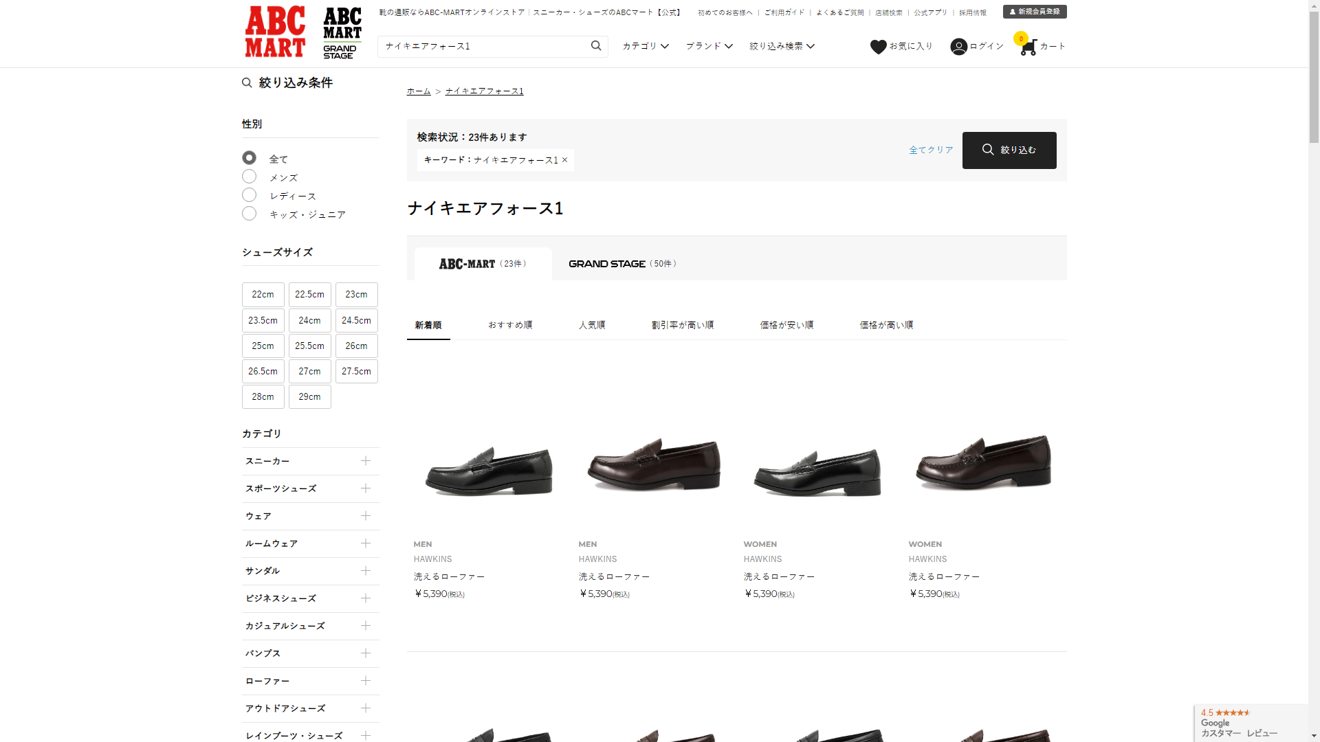 お調べしたところ現在、ABCマートではナイキエアフォース1に関連する商品を買うことが可能です。