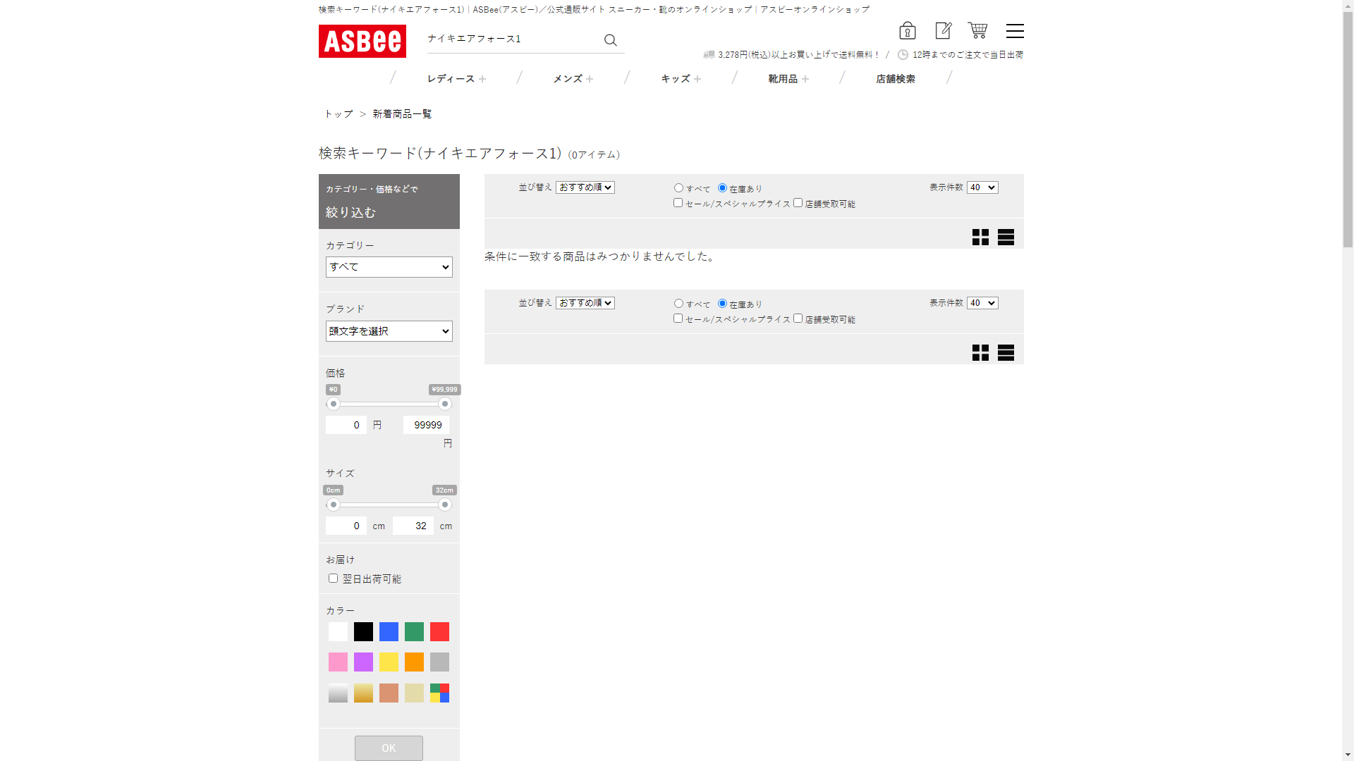 ナイキエアフォース1はASBee(アスビー)で販売されていません