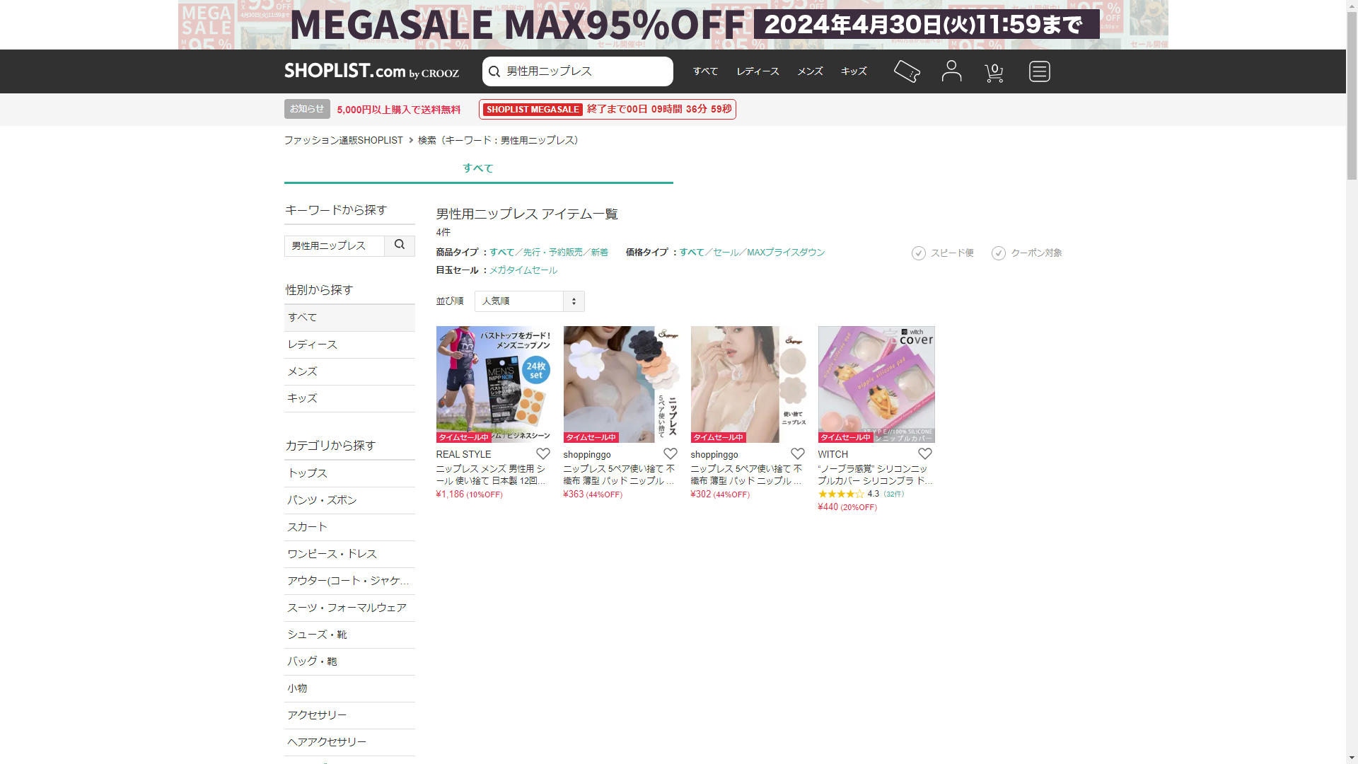 男性用ニップレスはSHOPLISTに売っています