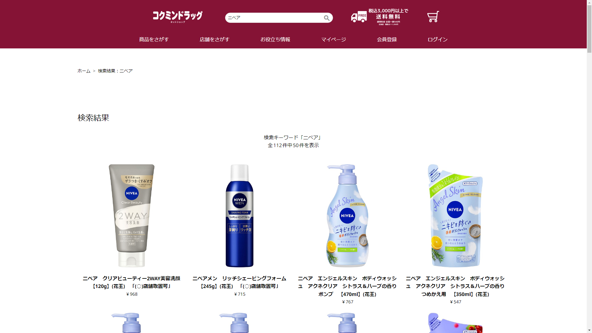 お調べしたところ現在、コクミンドラッグではニベアの関連する商品が販売されています。