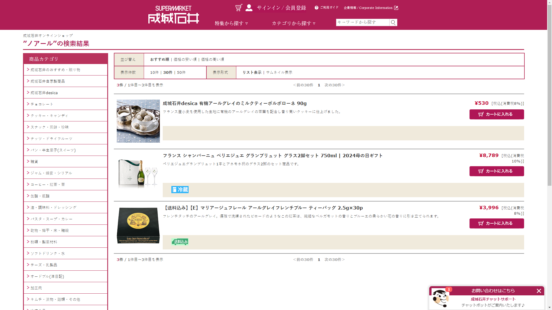 お調べしたところ現在、成城石井ではノアールの関連する商品が販売されています。