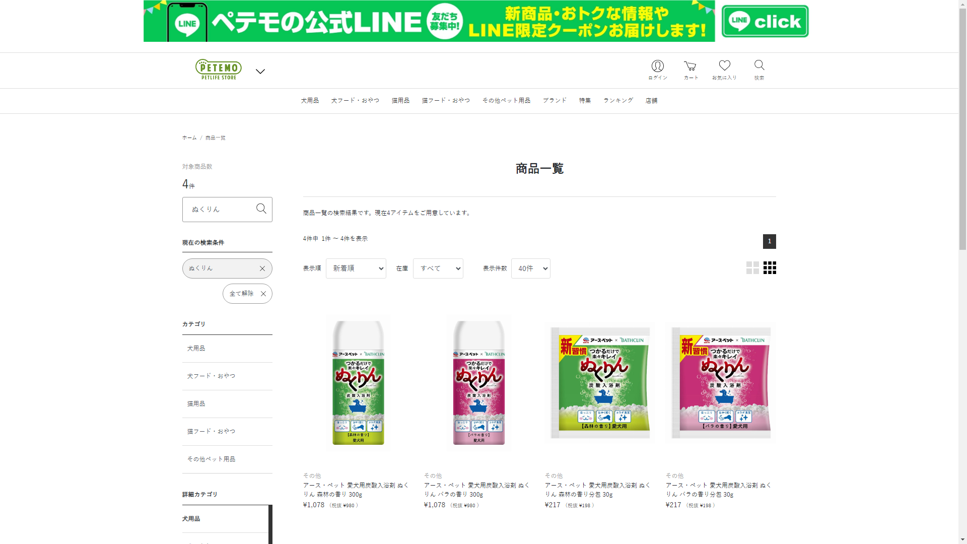 お調べしたところ現在、PETEMO(ペテモ)ではぬくりんに関連する商品を買うことが可能です。