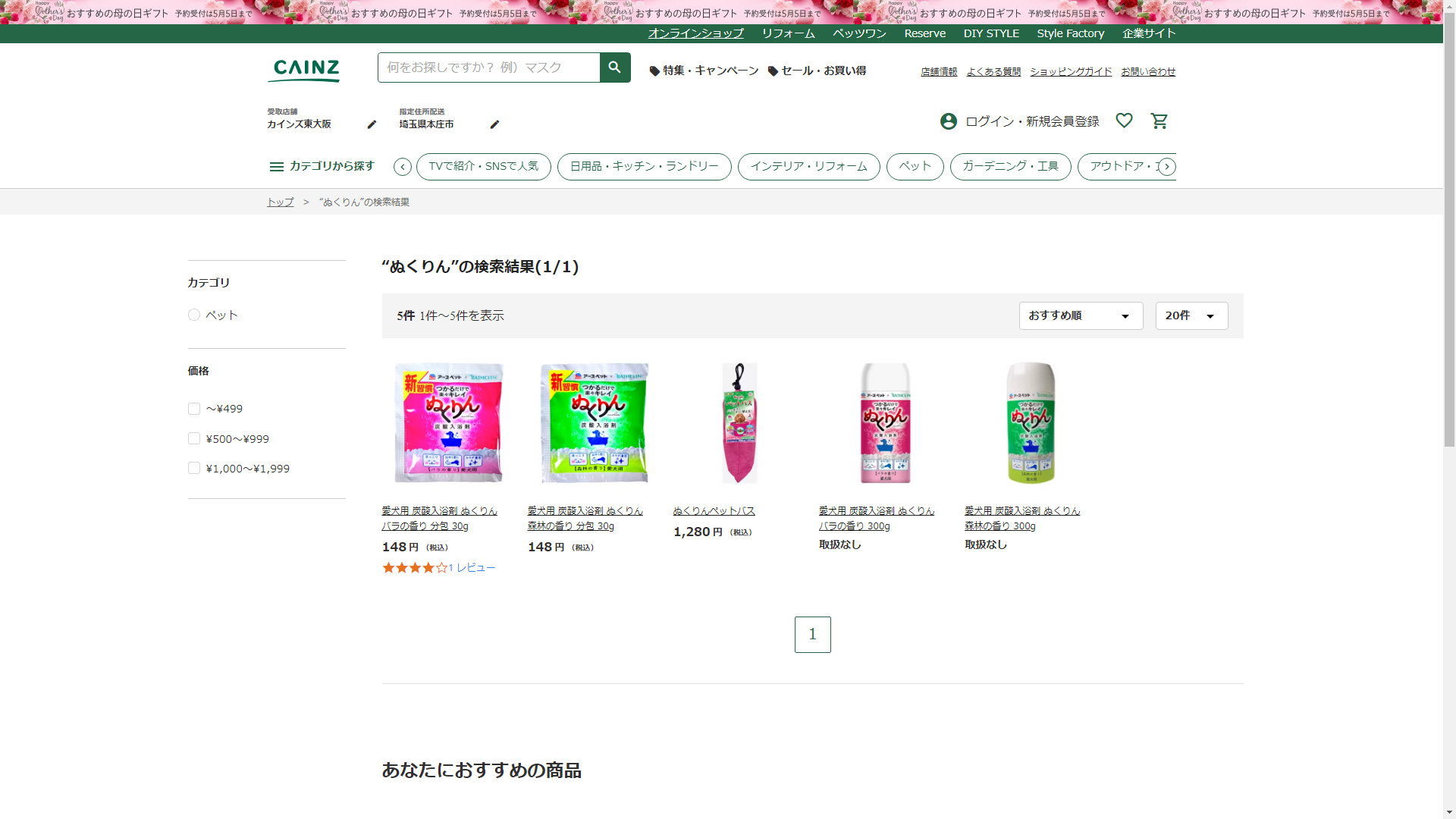 お調べしたところ現在、CAINZではぬくりんの関連する商品が販売されています。