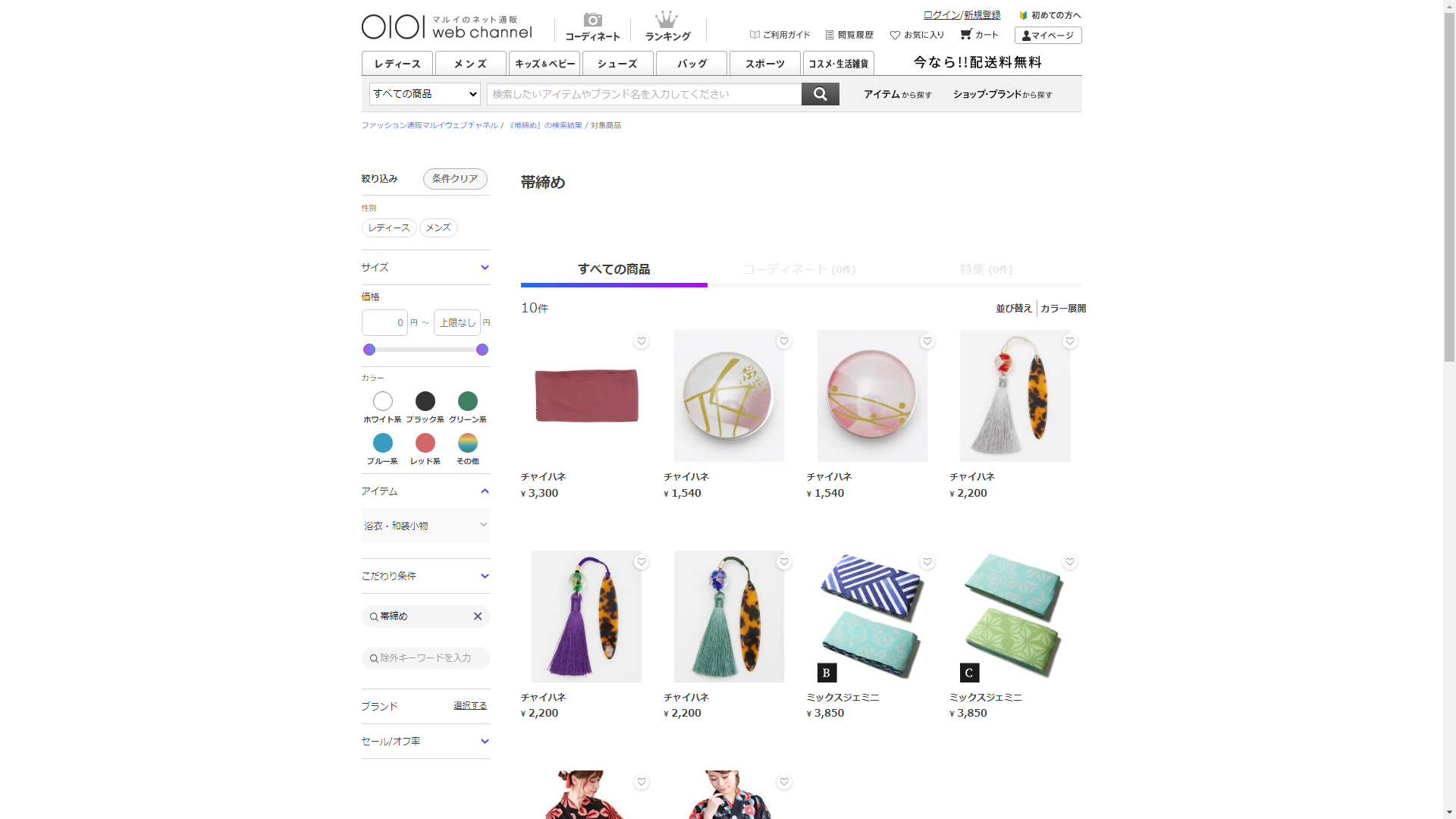 お調べしたところ現在、OIOI(マルイ)では帯締めの関連する商品が販売されています。