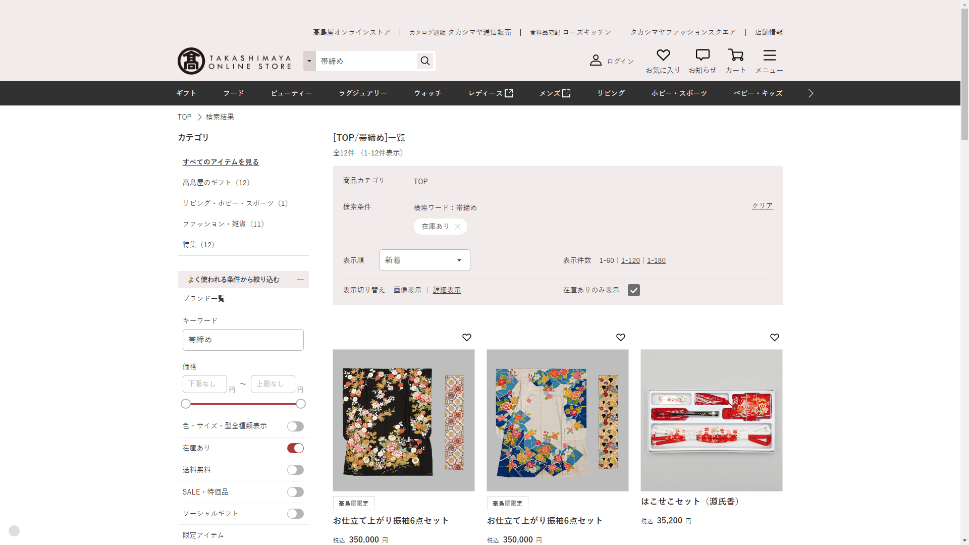 お調べしたところ現在、高島屋では帯締めに関連する商品が販売されています。