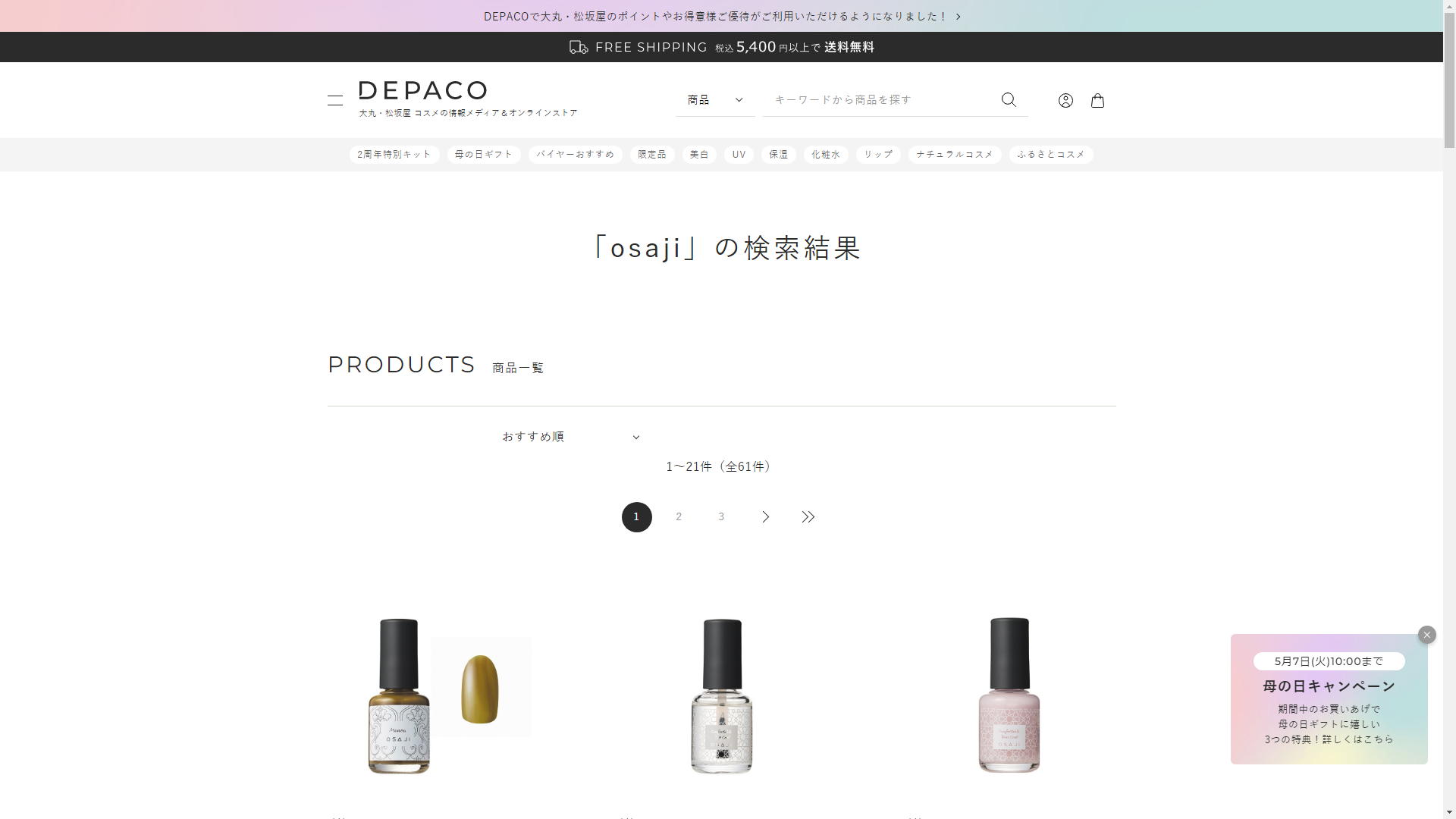 お調べしたところ現在、大丸松坂屋ではosajiに関連する商品が販売されています。