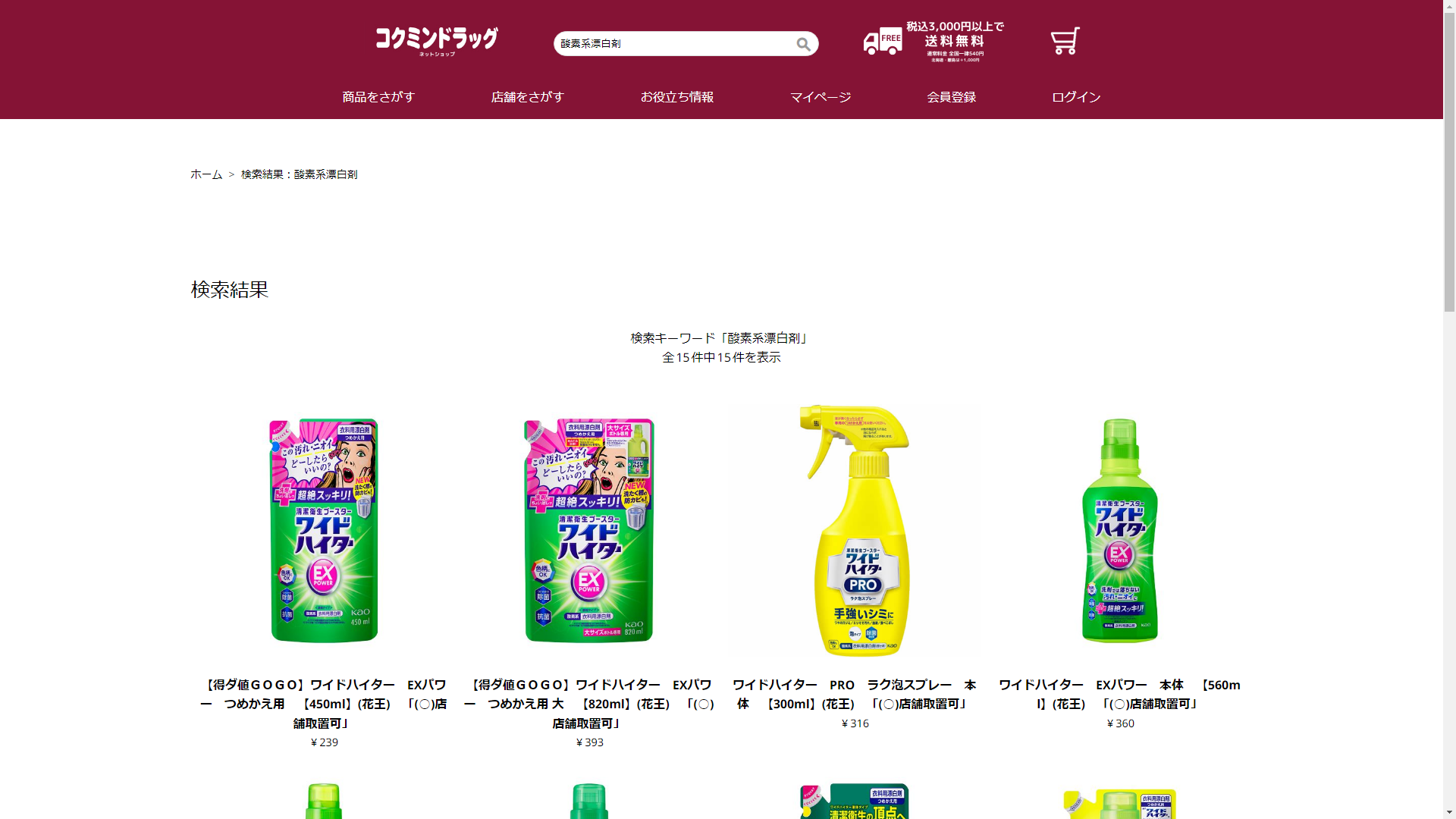 酸素系漂白剤はコクミンドラッグに売っています