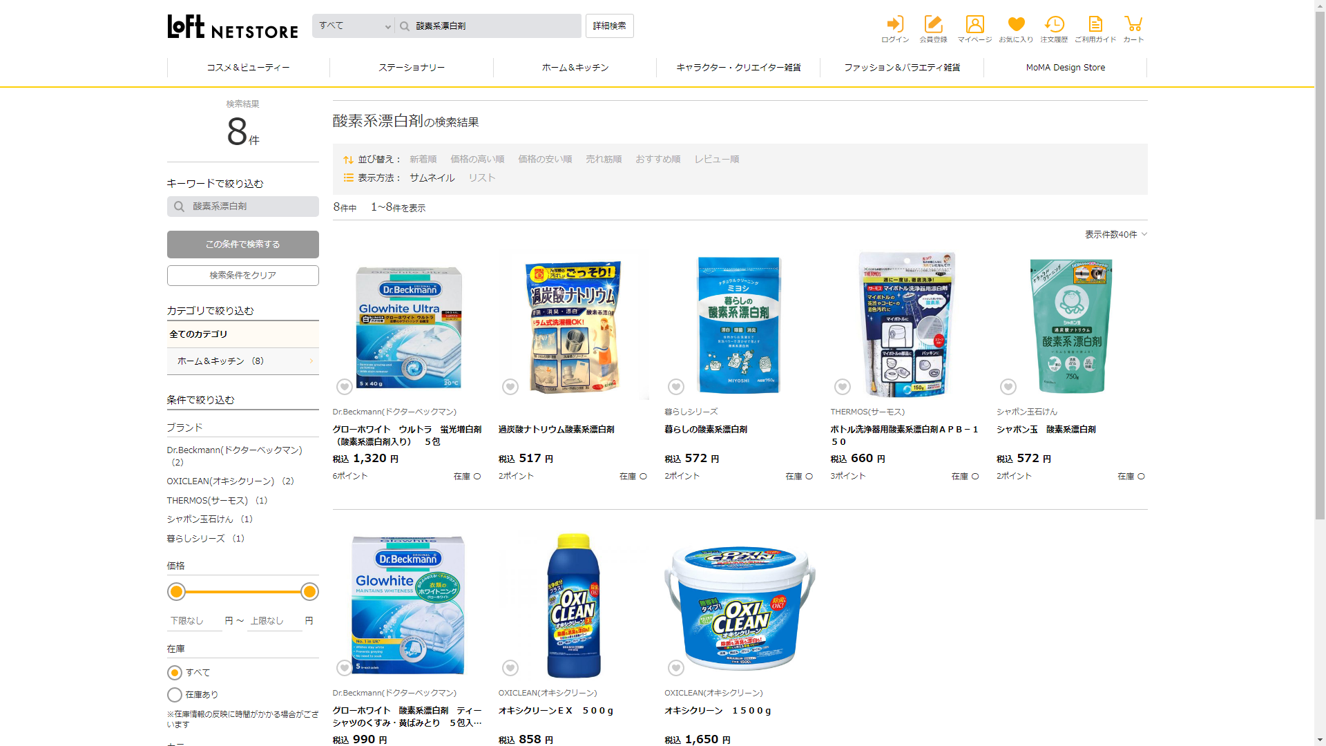 酸素系漂白剤はロフトで販売されています