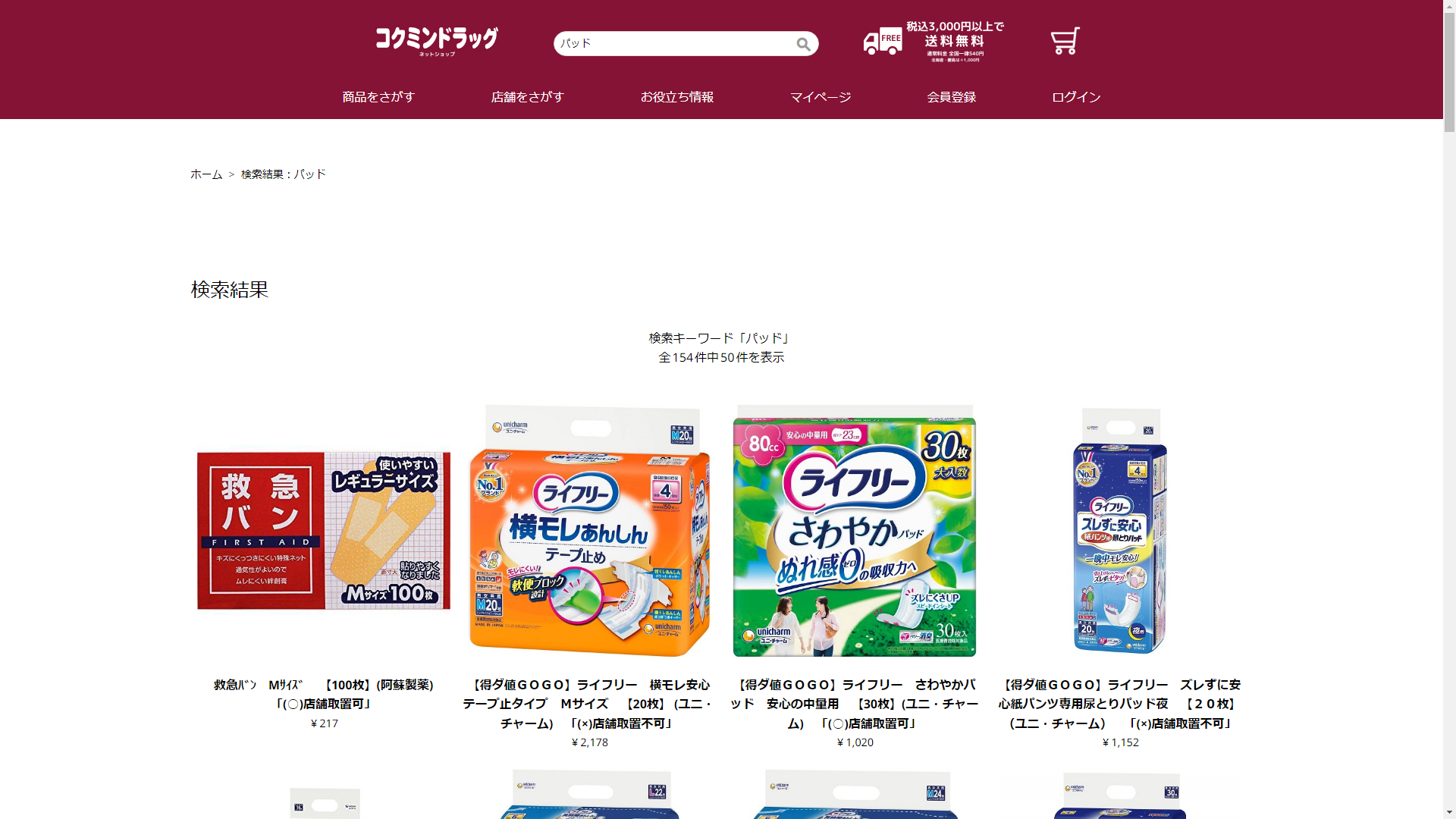 お調べしたところ現在、コクミンドラッグではパッドの関連する商品が販売されています。