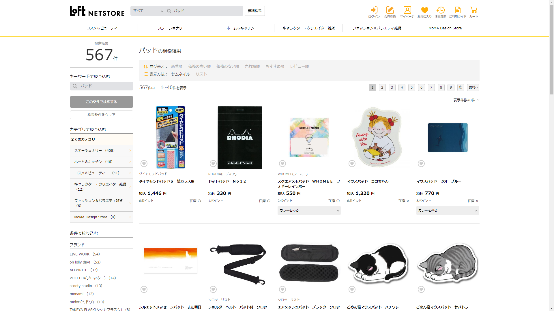 お調べしたところ現在、ロフトではパッドに関連する商品が販売されています。