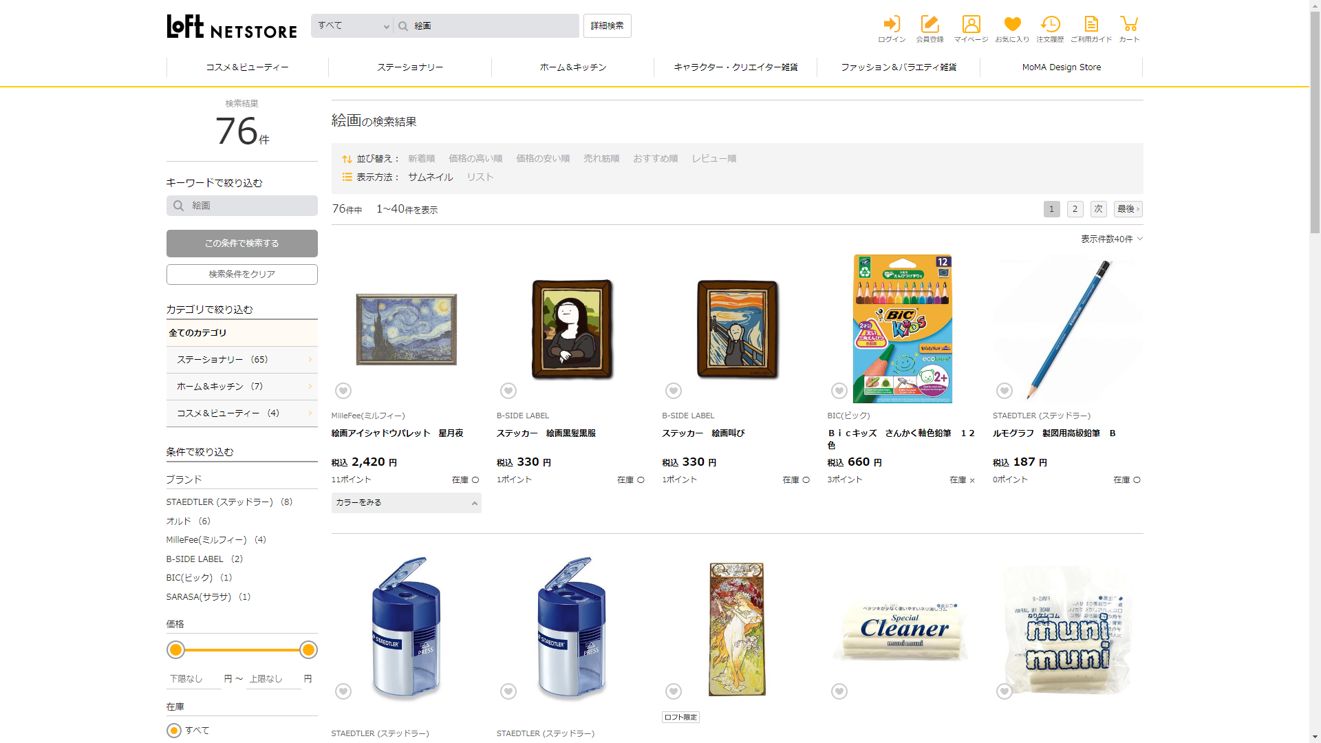 お調べしたところ現在、ロフトでは絵画に関連する商品が販売されています。