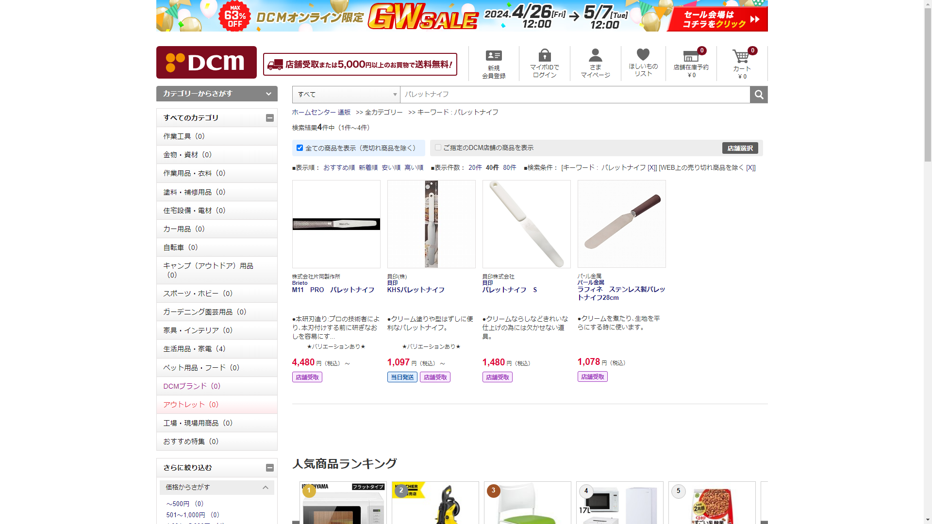お調べしたところ現在、DCMではパレットナイフに関連する商品が販売されています。