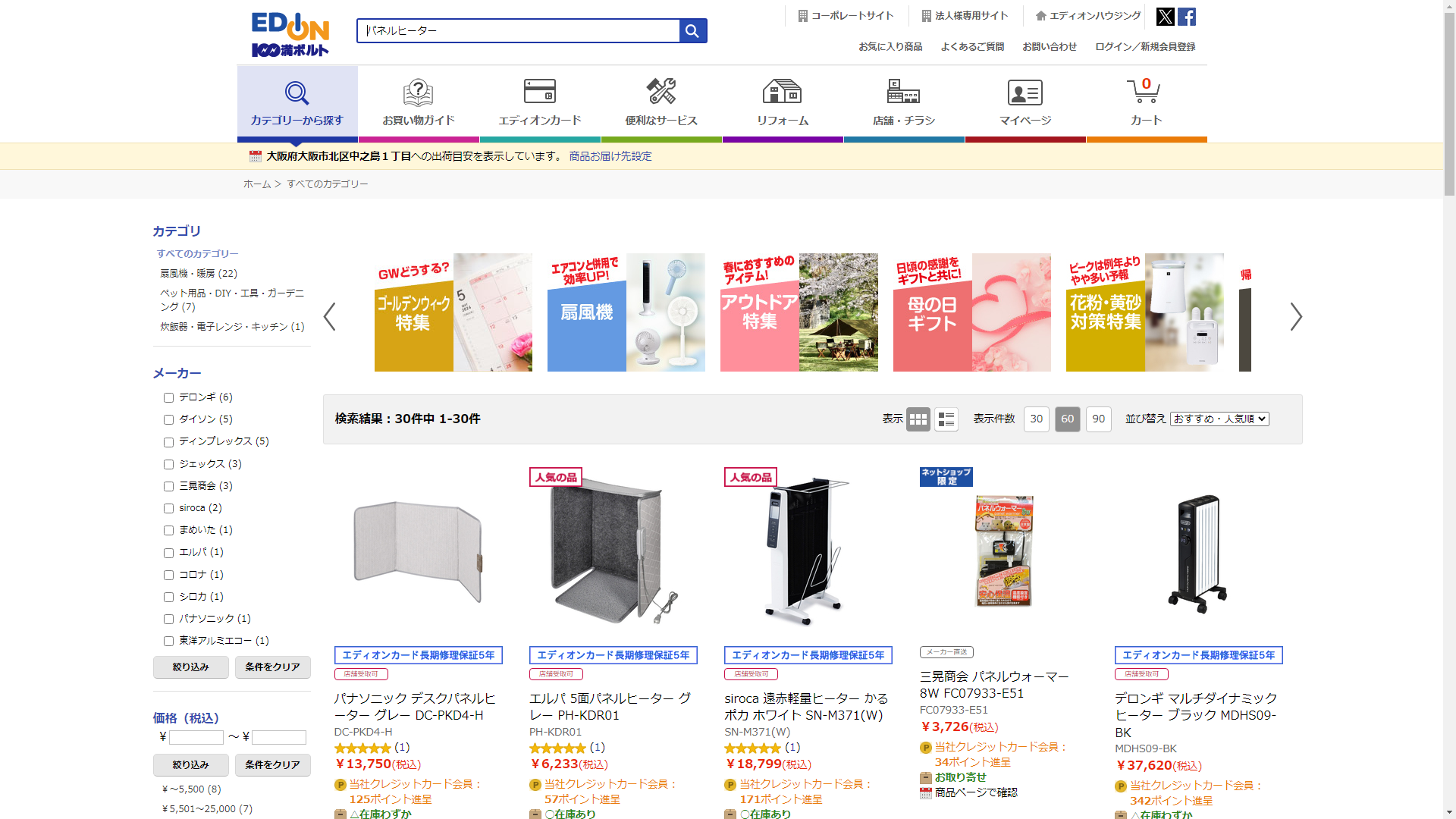 パネルヒーターはEDIONで販売されています