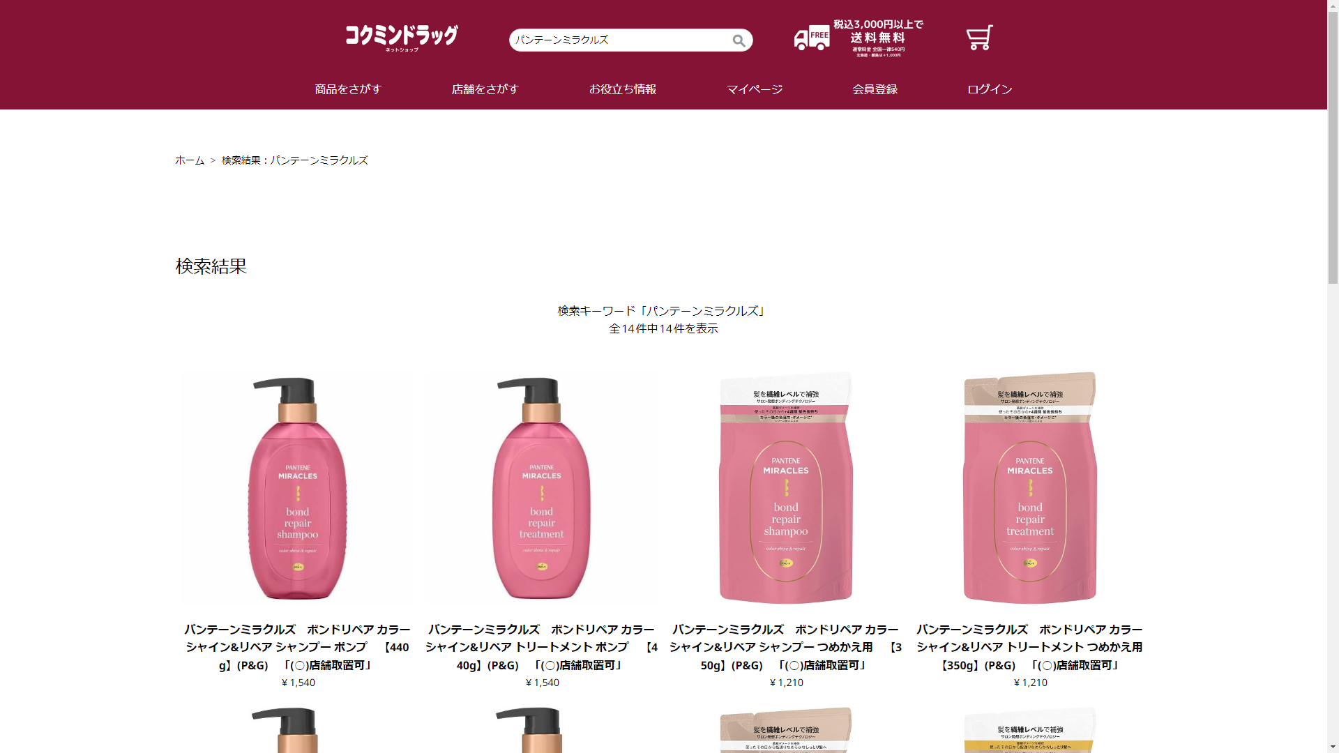 お調べしたところ現在、コクミンドラッグではパンテーンミラクルズの関連する商品が販売されています。