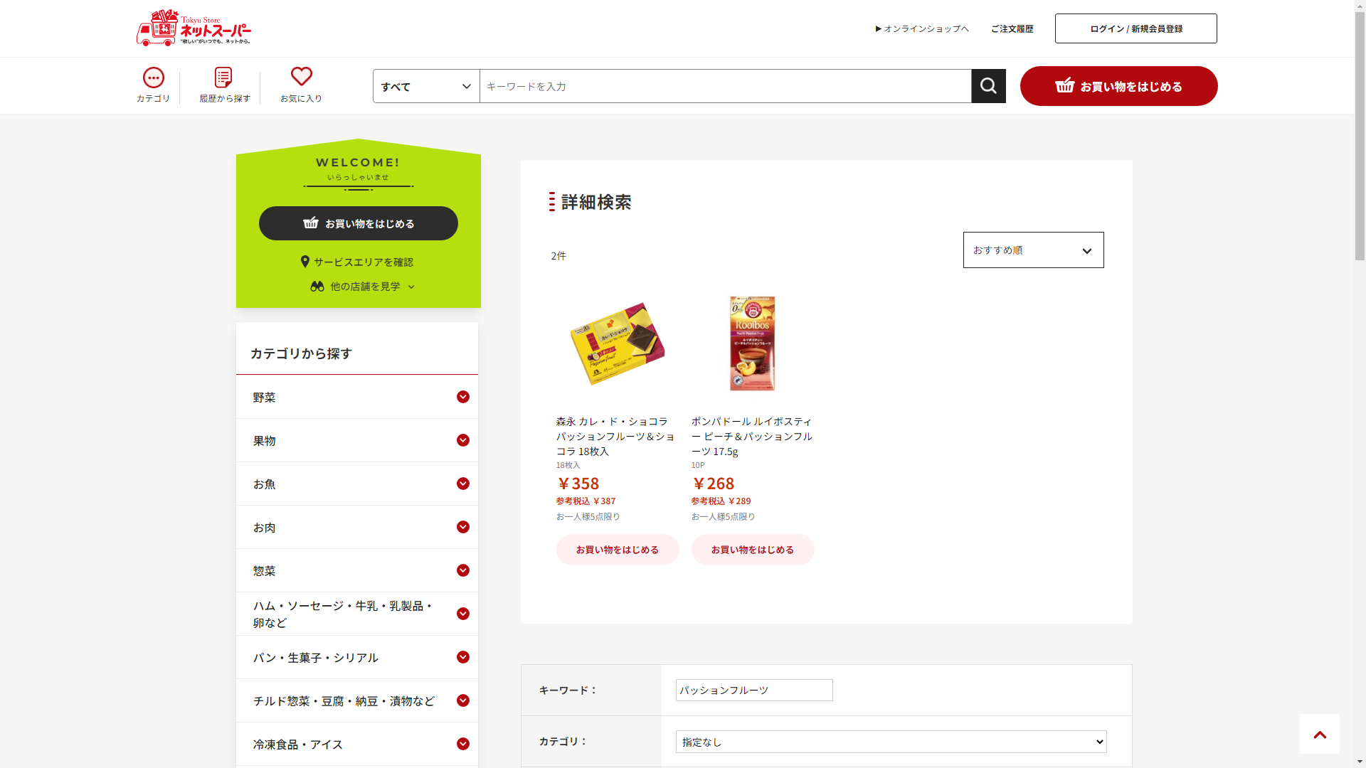 パッションフルーツはオーケーネットスーパーで販売されていません