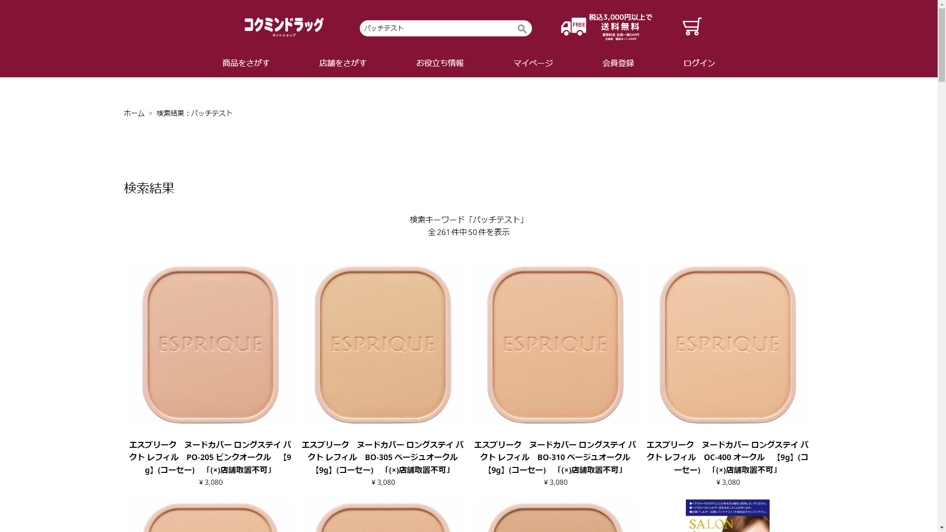 パッチテストはドラッグストア モリで販売されていません