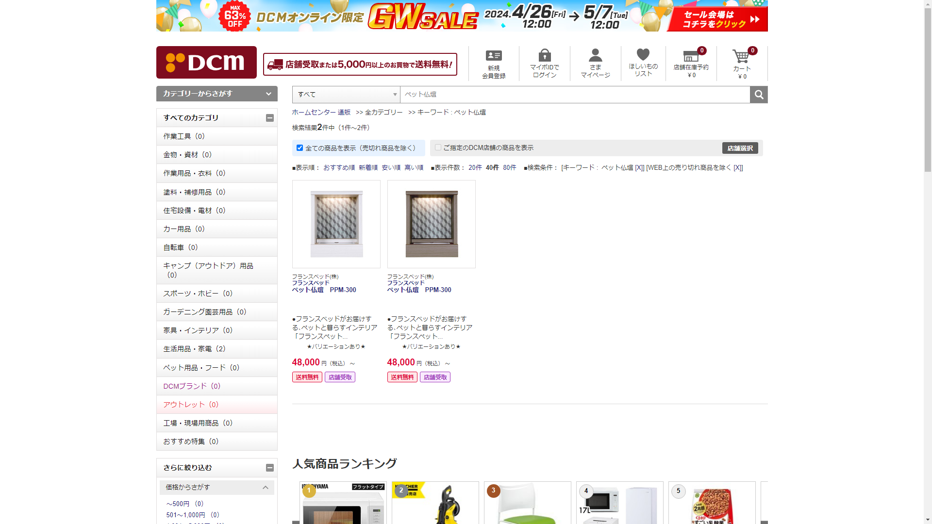 ペット仏壇はDCMで販売されています