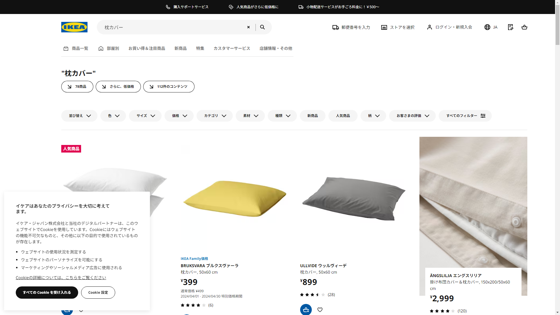 お調べしたところ現在、IKEAでは枕カバーに関連する商品を買うことが可能です。
