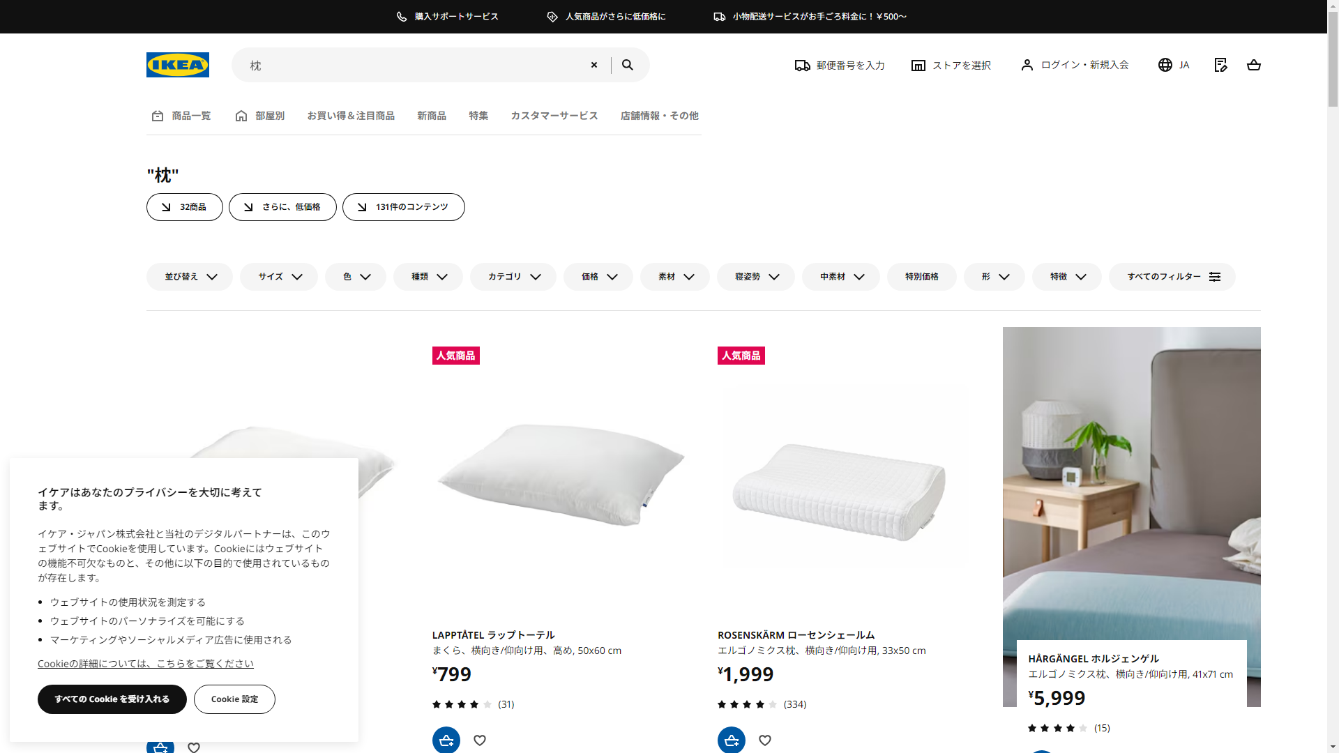 お調べしたところ現在、IKEAでは枕に関連する商品を買うことが可能です。