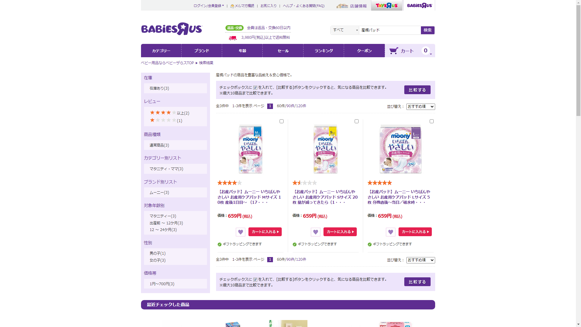 お調べしたところ現在、ベビーザらスでは産褥パッドに関連する商品を買うことが可能です。
