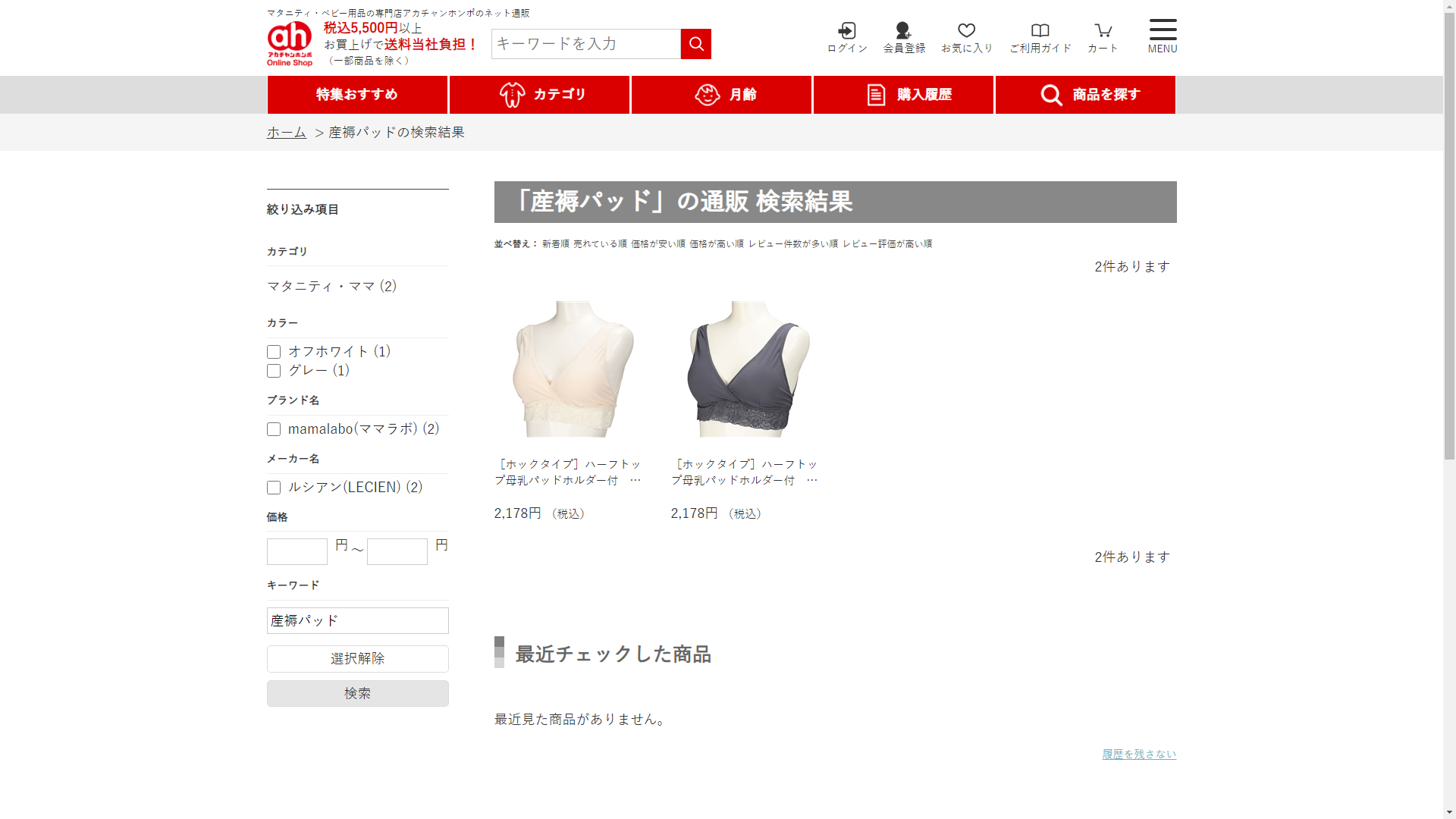 お調べしたところ現在、アカチャン本舗では産褥パッドの関連する商品が販売されています。