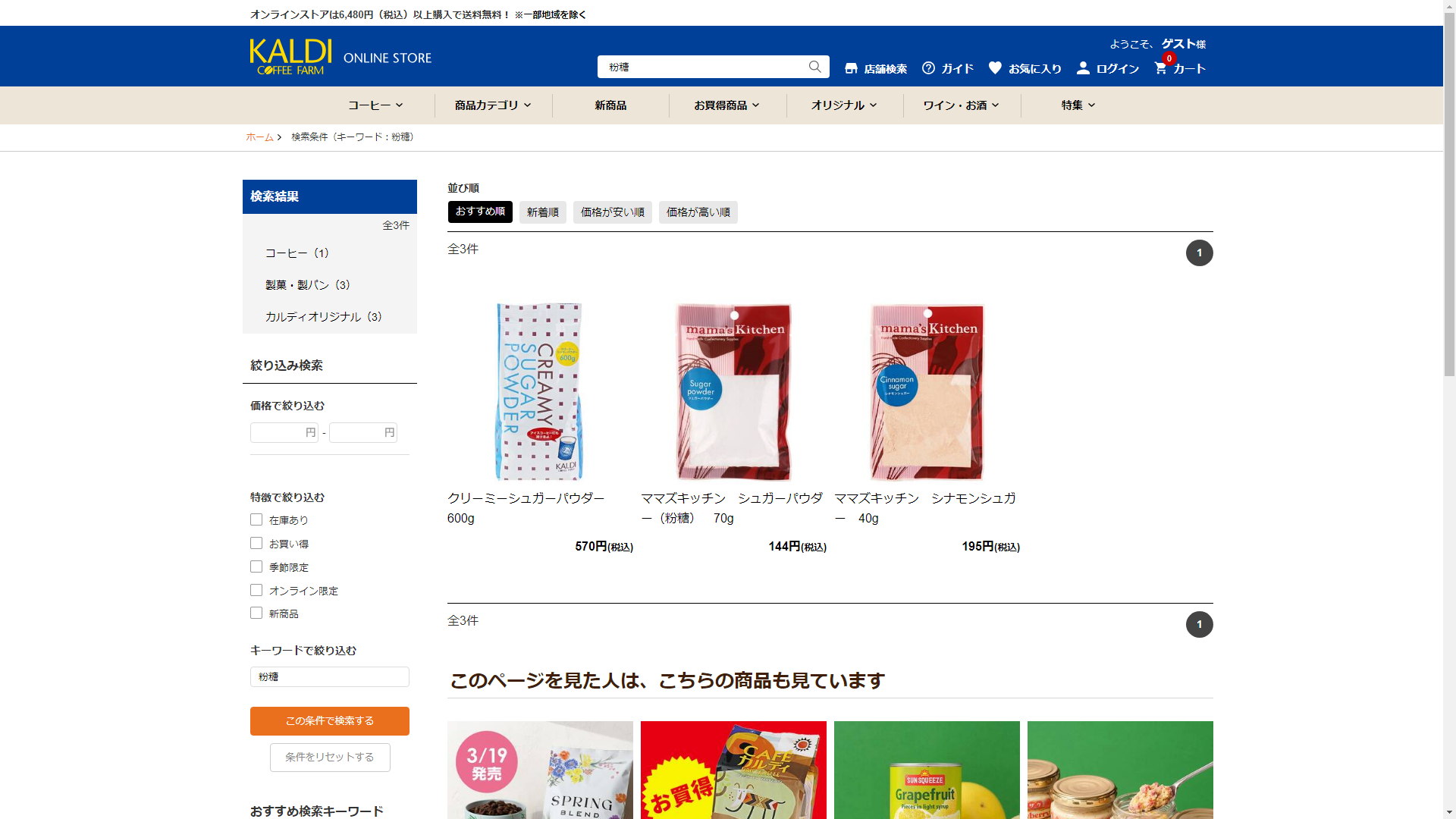 お調べしたところ現在、カルディでは粉糖に関連する商品を買うことが可能です。