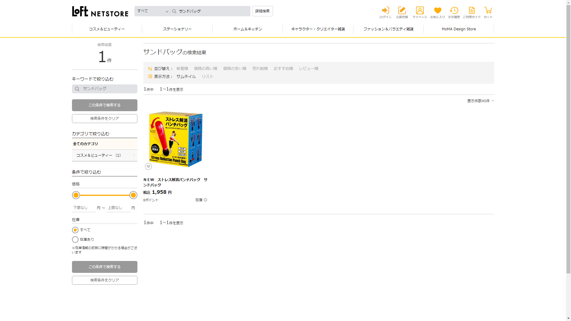 お調べしたところ現在、ロフトではサンドバッグに関連する商品が販売されています。