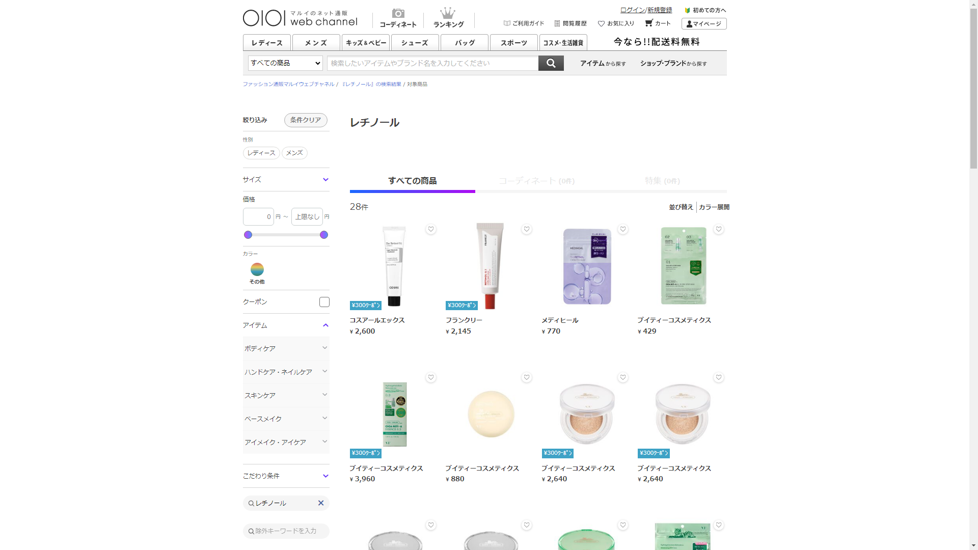 お調べしたところ現在、OIOI(マルイ)ではレチノールに関連する商品を買うことが可能です。