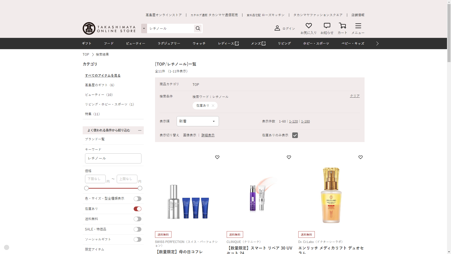 レチノールは高島屋に売っています