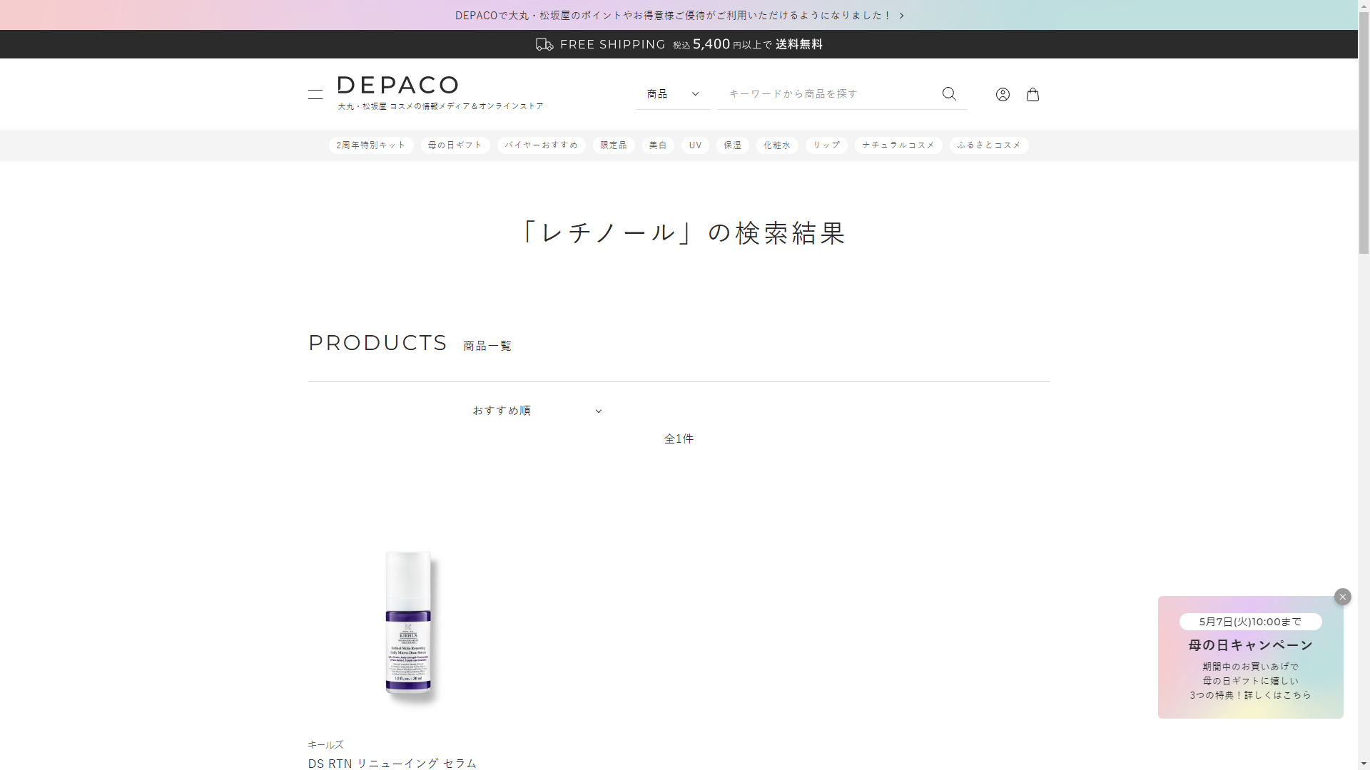 レチノールは大丸松坂屋で販売されています