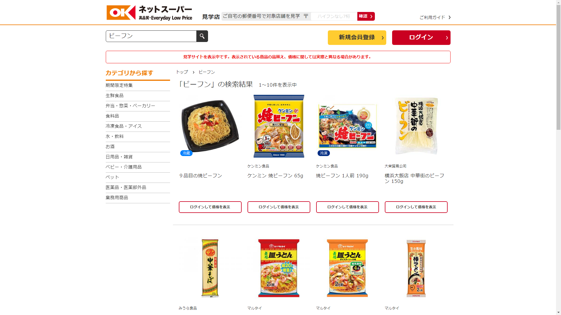 お調べしたところ現在OKネットスーパーではビーフンに関連する商品が販売されています。