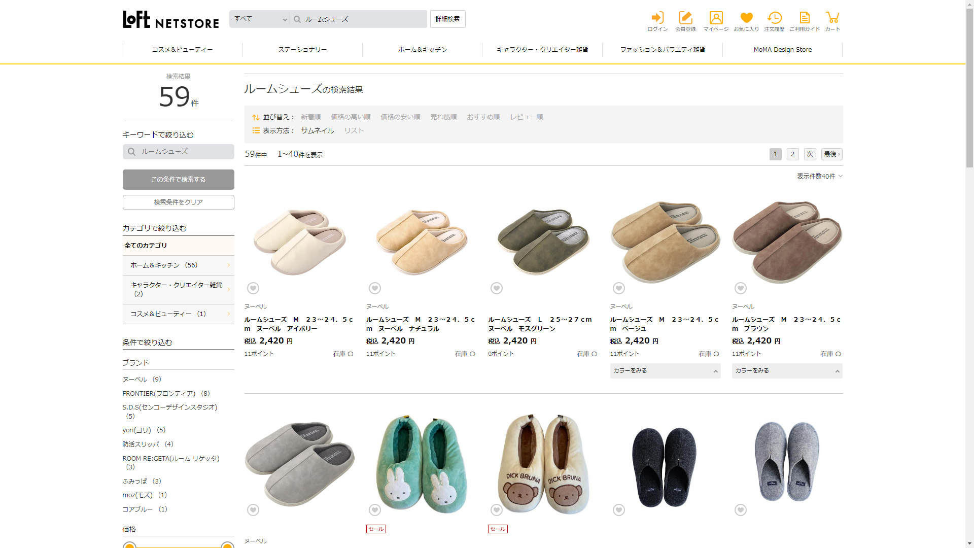ルームシューズはロフトで販売されています