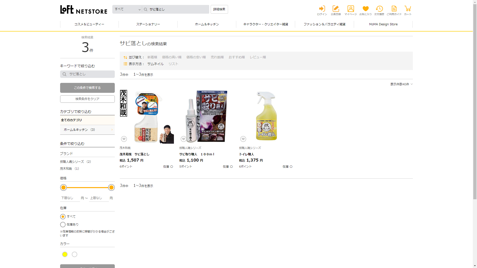 お調べしたところ現在、ロフトではサビ落としに関連する商品が販売されています。