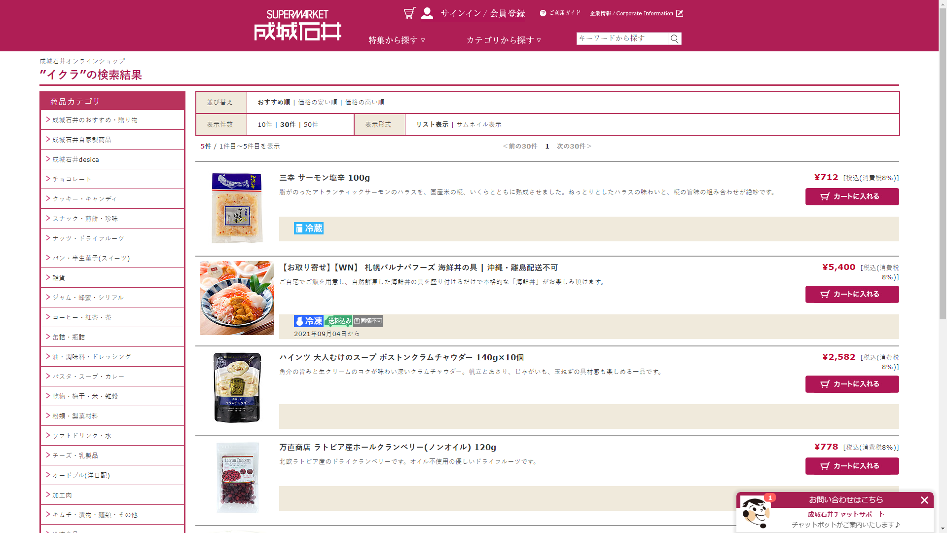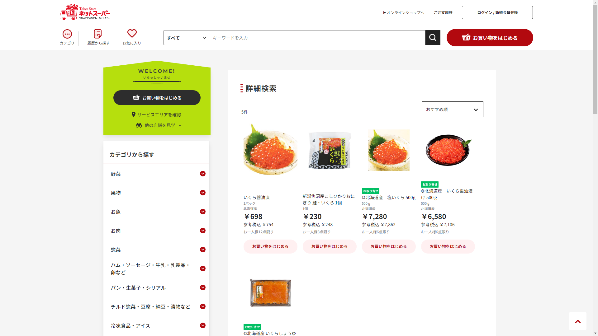 イクラはオーケーネットスーパーで販売されていません